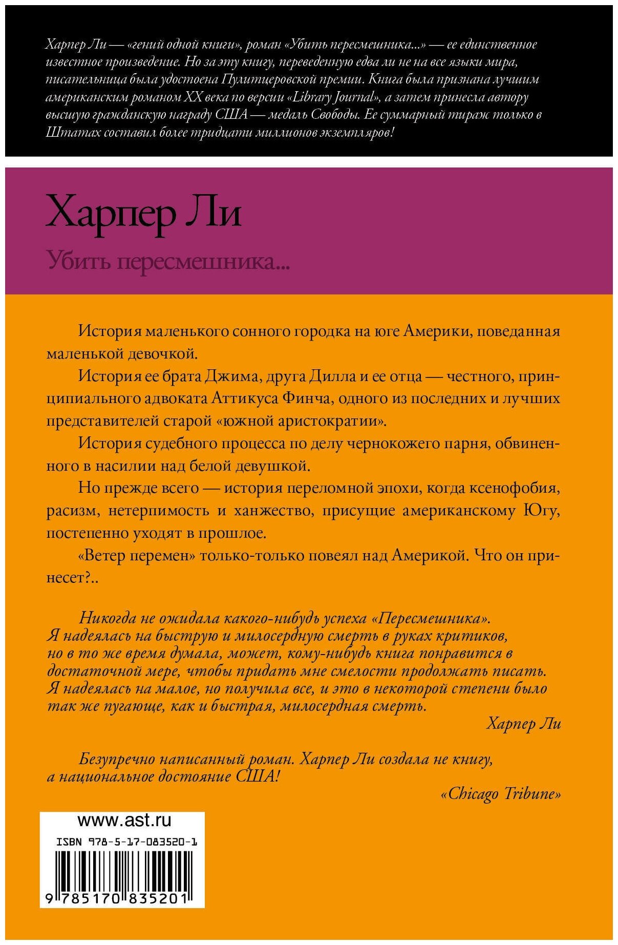 На сегодняшний день товар «Книга: Убить пересмешника… (Харпер Ли); Издательство АСТ, 1960» можно купить с кешбеком в 5 магазинах: ЛитРес, Буквоед, Яндекс.Маркет, Читай-город, book24