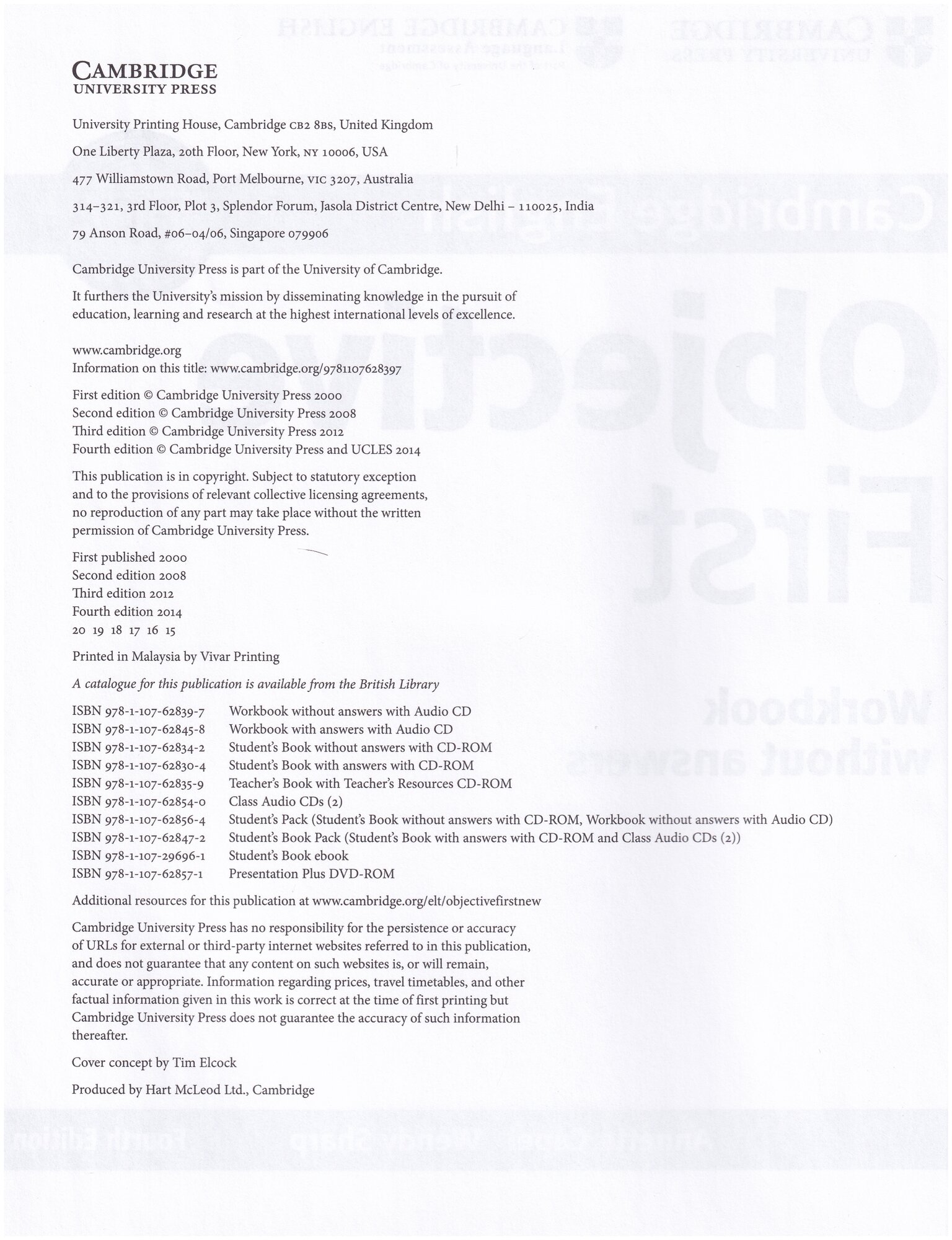 Objective First Fourth Edition is official preparation for the revised Cambridge English: First exam, also known as First Certificate in English (FCE). It has been fully updated in line with the revised exam.