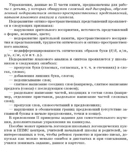 В пособии представлено 159 комплексов разнообразных заданий для учащихся 2 - 3 классов общеобразовательной школы, у которых имеются нарушения письменной речи различных видов или "ошибки роста", то есть трудности в усвоении правил русского языка.