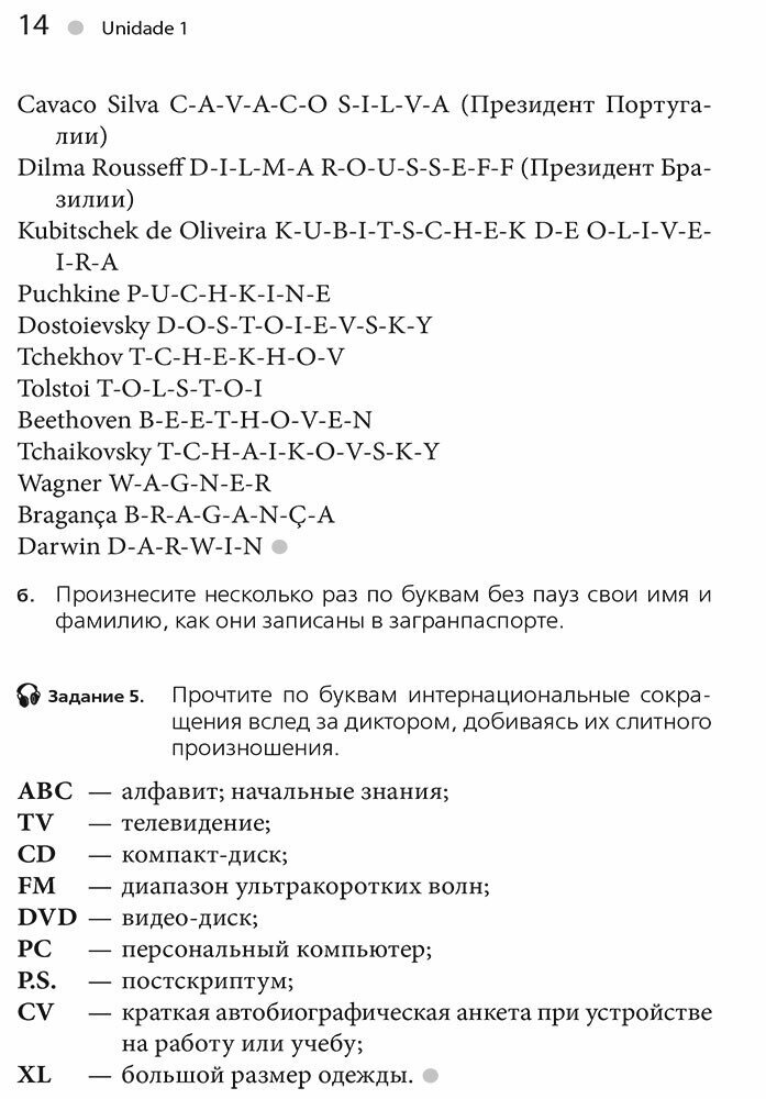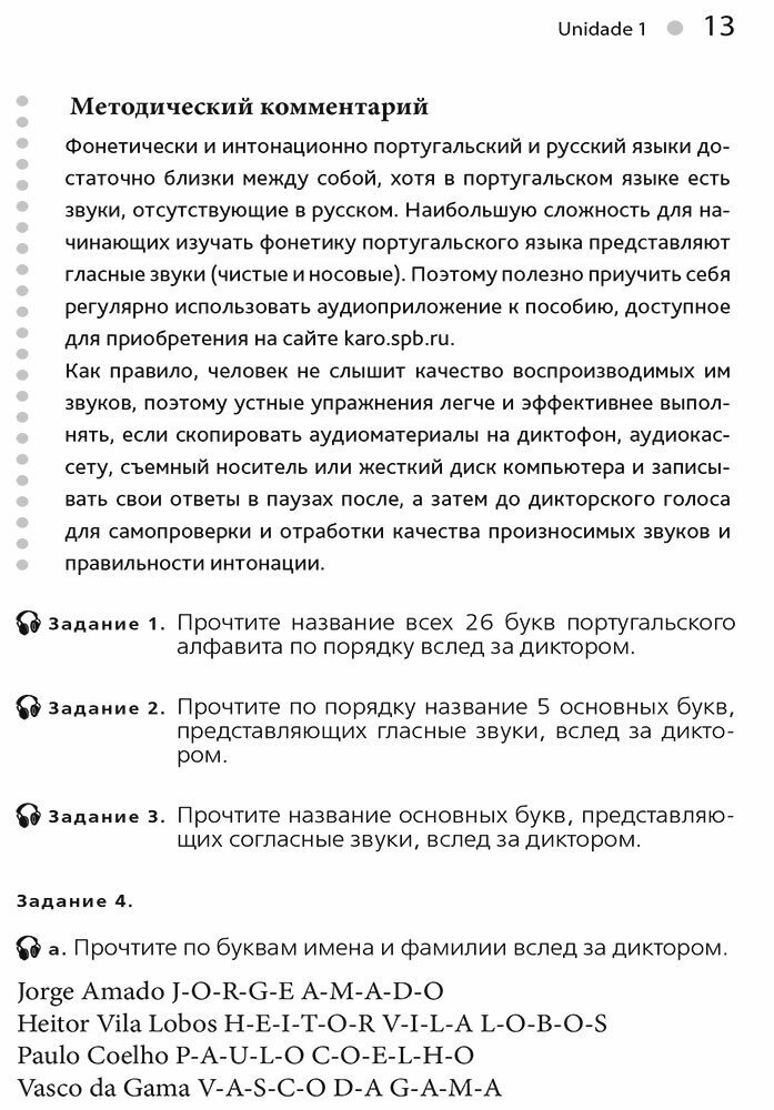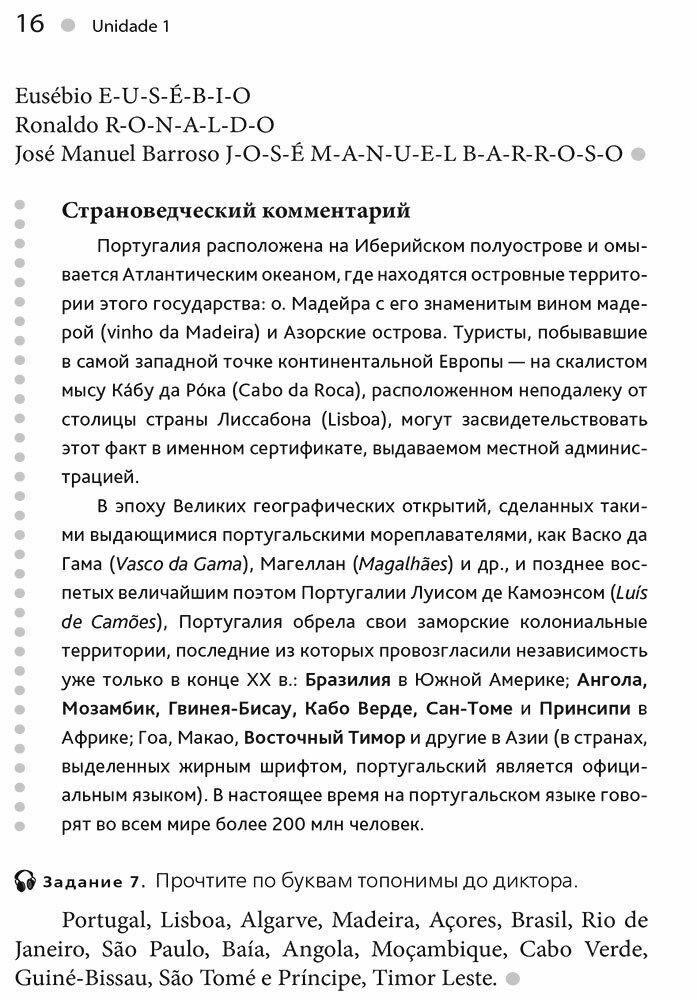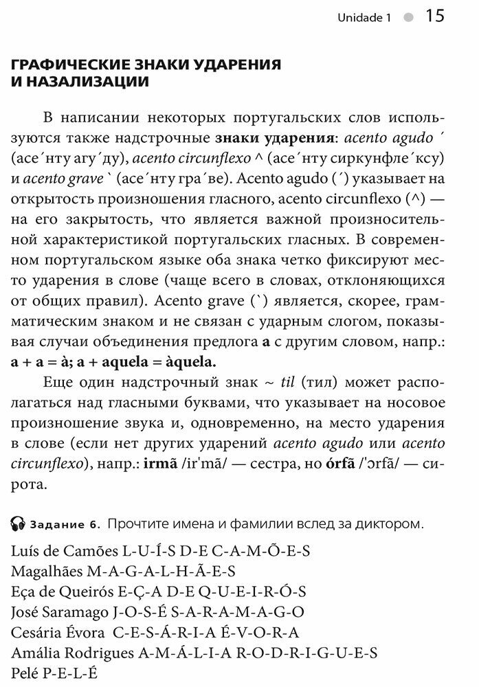 Учебный курс "Португальский без акцента" предназначается для тех, кто хотел бы овладеть этим языком "с нуля" (уровень А1/А2 по Единой языковой шкале Совета Европы) и продолжить его изучение в дальнейшем на курсах иностранных языков или в учебных заведениях. Пособие может быть также рекомендовано туристам, отправляющимся в зарубежный тур, и для самостоятельного изучения широким кругом любителей иностранных языков по всей стране. С этой целью каждый из 12 уроков пособия снабжен не только разнообразными упражнениями с ключами, но и тестовыми заданиями с ответами для самоконтроля степени освоенности учебного материала.