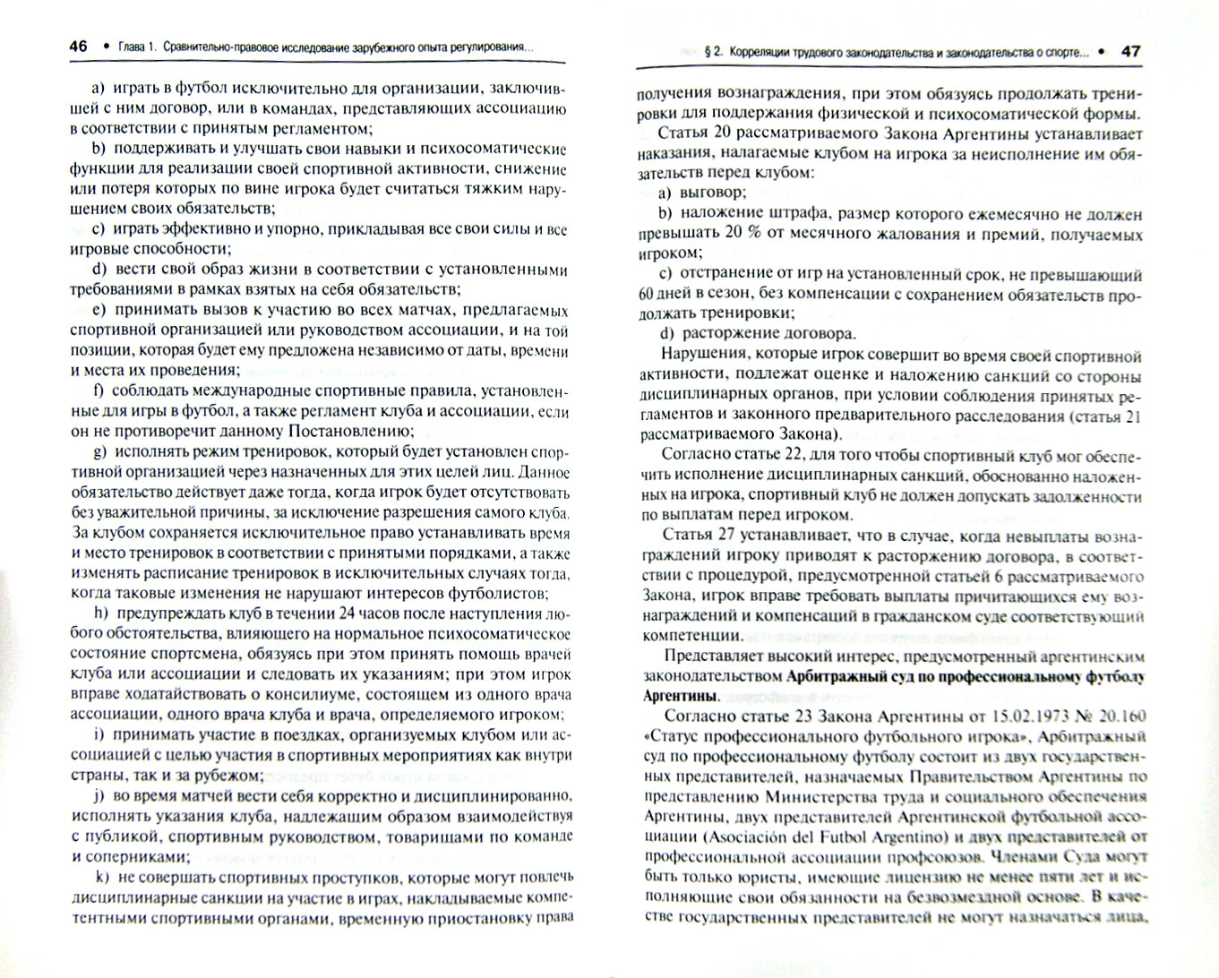 Глава 1 посвящена сравнительно-правовому исследованию зарубежного опыта регулирования спортивно-трудовых отношений профессиональных спортсменов. Автор раскрывает понятие профессионального спортсмена в зарубежном законодательстве и анализирует нормы трудового законодательства и законодательства о спорте применительно к спортивно-трудовым отношениям профессиональных спортсменов.