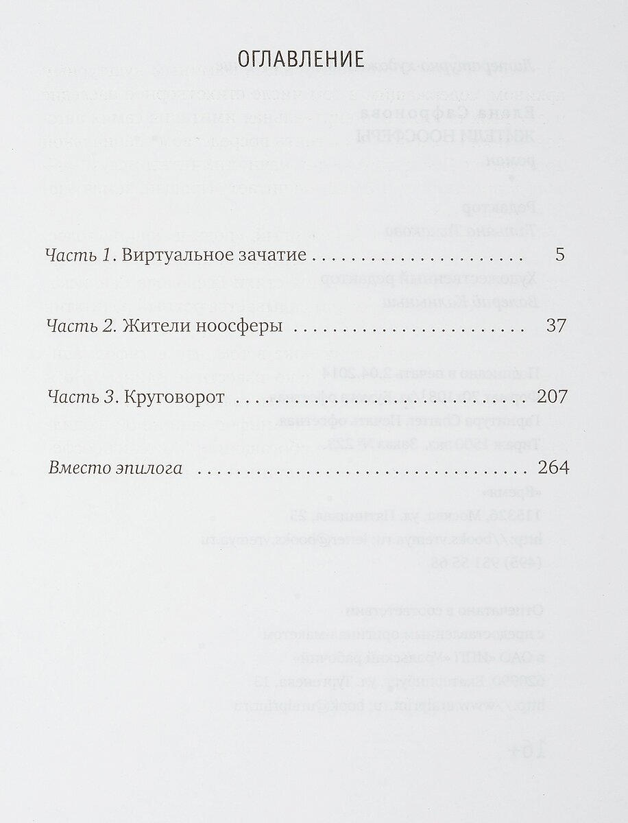 Но все это наносное, потому что в глубине романа-триптиха, состоящего из трех картин под названиями глав: «Виртуальное зачатие», «Жители ноосферы» и «Круговорот», конечно же, стоит что-то большее, чем жизнеописание личного пространства главной героини.