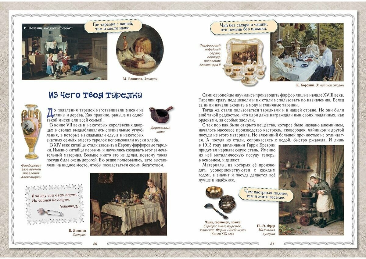 Рассказ о том, какими раньше были жилища, как современные ткани выросли из первобытной набедренной повязки, как люди научились делать бумагу... и другие увлекательные истории не только развлекут ребенка, но и научат его бережнее относиться к плодам чужого труда.