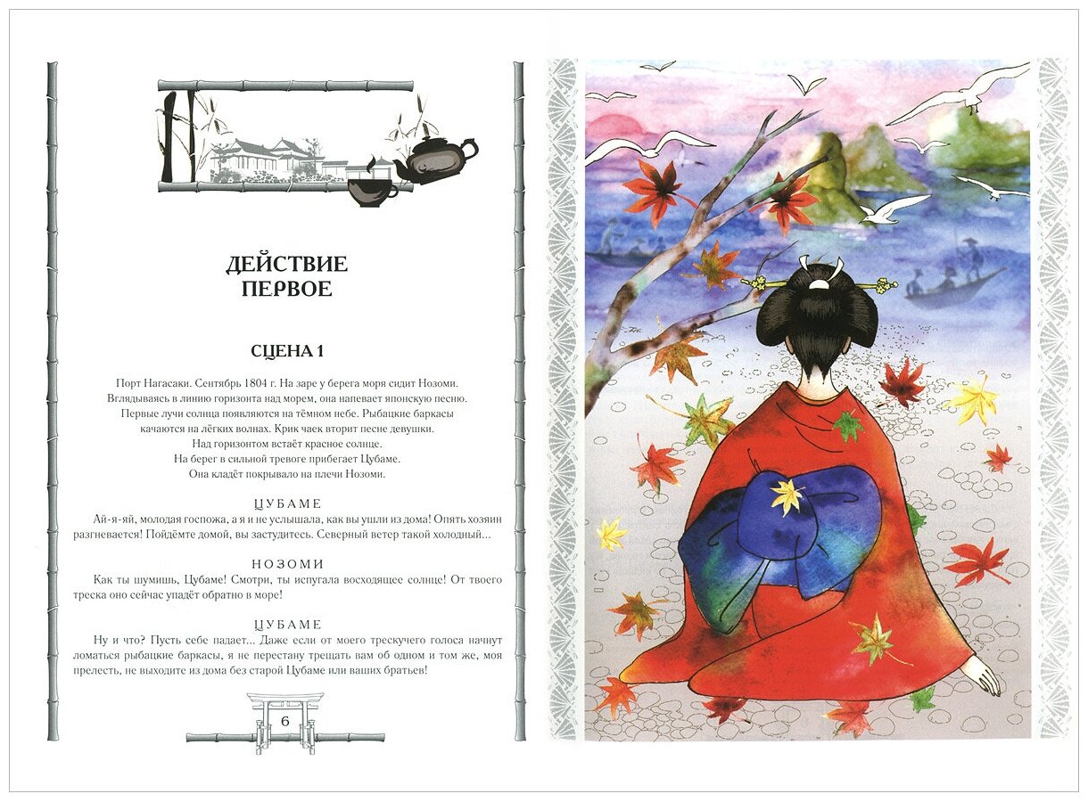 Ставлю лайк, но со скрипом. В основном, за счет прекрасного и даже роскошного оформления книги с пьесой. Не смотря на мягкую обложку, внутри иллюстрации с сочнейшими красками на рисунках. Мелованная бумага , белая, прямо светящаяся. Ни малейшего намека на желтизну. Но содержание хромает. Основной недочет в том,что Лариса Аш написала не самостоятельную пьесу, а очень похожую на сюжет рок-оперы "Юнона и Авось", не смотря на то, что события в ее произведении разворачиваются раньше и в Японии. У японцев менталитет и ментальность другие, не европейские , а восточные. И в Японии события не могут развиваться почти также, или очень похоже на историю любви Рязанова к Кончите в Калифорнии. Извините,но я считаю,именно так! Книга с пьесой может быть интересна тем,читателям, которые намеренно хотят прочитать что-нибудь очень похожее на "Юнону и Авось".