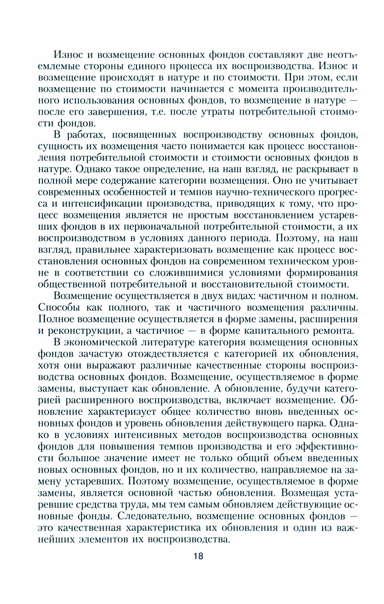 Рассматриваются теоретические основы и закономерности воспроизводства и обновления основных фондов строительства, темпы, пропорции и особенности их развития, возмещение и накопление в современных условиях хозяйствования, дан анализ состояния, тенденций и структуры формирования основных фондов. Исследован инвестиционный потенциал и источники воспроизводства основных фондов, предложена методика расчета эффективности их обновления и функционирования. Выявлены резервы повышения эффективности воспроизводства и обновления основных фондов на инновационной основе, обоснованы предложения по совершенствованию методов начисления и использования амортизации; привлечению иностранных инвестиций в развитие и модернизацию производственного потенциала отрасли; улучшению системы использования и ремонта основных фондов.