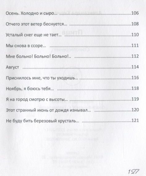 "Птица" Кирилловой - птичка (книга невелика), но очень сильная, настоящая поэзия. Что-то Ахматовское. Современные авторы меня порядком утомили своими банальными стишками на бытовые темы "покурим на скамеечке"... А тут очень глубокие стихи. Случайно попалась книга. Считаю это удачей.