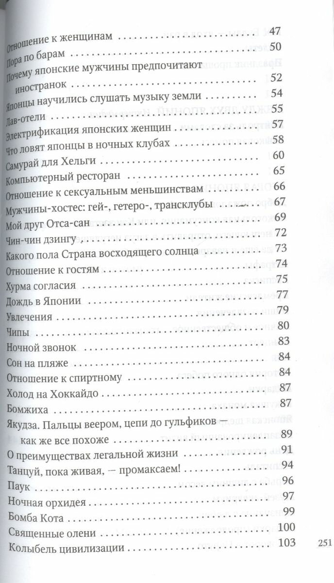 Честно говоря, ожидала большего. Книга состоит из коротеньких рассказов с описанием того, как жила автор в Японии и работала хостес в клубах. Кто хочет почерпнуть информацию о Японии будет разочарован : её по сути мало. А если хочется просто "легкого чтива" , то можно почитать. Достаточно интересно. Слегка шокировало в самом начале книги выражение: "приключения на свою задницу" , но далее ,такой лексики не было. Это порадовало.