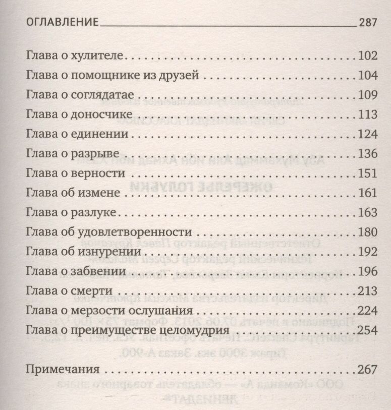 "Ожерелье голубки" - уникальный шедевр мировой литературы, вышедший из-под пера одного из наиболее интересных и оригинальных писателей мусульманской Испании Абу Мухаммада Али ибн Ахмада ибн Хазма (994-1064). В мусульманских странах той эпохи голубь вовсе не был символом мира и кротости, каким он стал позднее у христиан. Напротив, он олицетворял приписанный ему еще в "голубином городе" Вавилоне образ эротизма и сладострастия. Эта книга - трактат о любви, ее законах и превратностях, ее вдохновляющей силе и отравляющем душу яде. Автор, подробно разбирающий симптомы и последствия любовного недуга, словно дает читателю напутствие: воистину погибель и спасение приходят к нам из одного источника. Вставные сценки "Ожерелья голубки" написаны с тем высоким мастерством, которое издревле свойственно арабским рассказчикам, подарившим нам бессмертную "Тысячу и одну ночь".