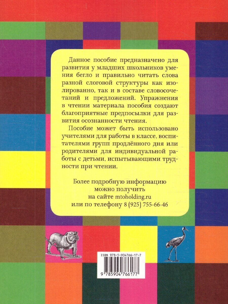 Данное пособие предназначено для развития у младших школьников умения бегло и правильно читать слова разной слоговой структуры как изолированно, так и в составе словосочетаний и предложений. Упражнения в чтении материала пособия создают благоприятные предпосылки для развития осознанности чтения.