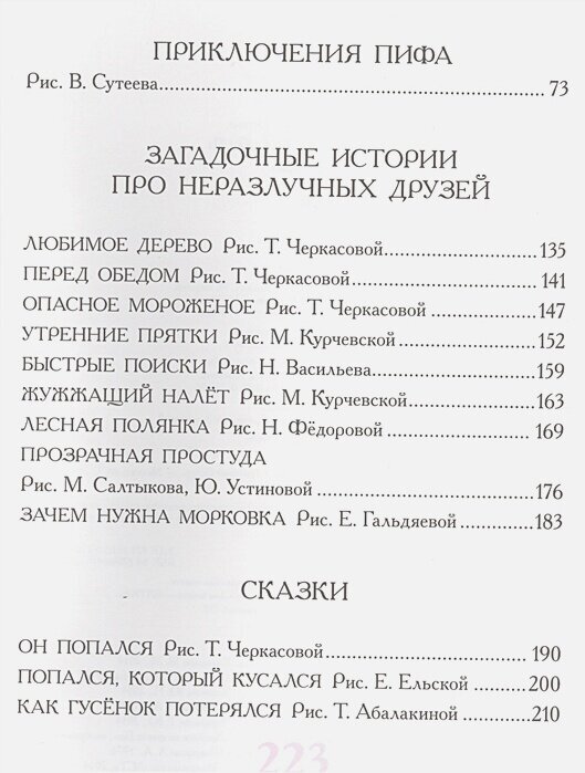 отличная книга. удобный формат, хорошее качество бумаги, отличные картинки на каждой странице. автор в рекомендациях, думаю не нуждается. сыну 3 г. 7 мес. книга очень понравилась. сказки про котенка Гав и про собачку Пифа (картинки к этому циклу настолько частые, что ребенок сам может рассказать сказку по ним) уже нам были знакомы, а вот с загадочными историями про неразлучных друзей познакомились впервые - они-то больше всего сыну и понравились: каждый рассказ заканчивается вопросом к ребенку, т.е. не только развлечение, но и повод подумать. Очень довольны приобретением. Дкмаю и малышам и деткам постарше будет интересно. Картинки прилагаю.