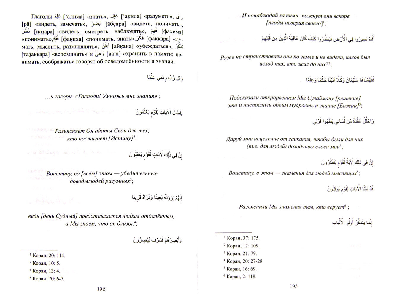 Книга представляет собой экскурс по наукам, связанным с Кораном и его изучением. Рассматривается не только Коран как Откровение Божье, но и как научный феномен (ведь многие открытия сделаны современными учеными благодаря Корану). Есть раздел, посвященный тому, как правильно читать определенные места в Коране. Также даются коранические притчи и рассказы и др. Т.к. книга перевод с персидского, то читать ее непросто: она изобилует специальными терминами, учтите это.