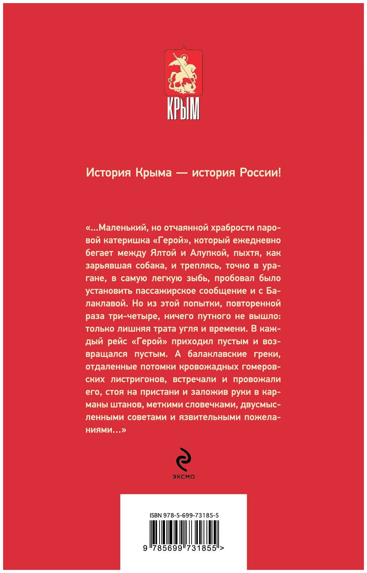 "Маленький, но отчаянной храбрости паровой катеришка "Герой", который ежедневно бегает между Ялтой и Алупкой, пыхтя, как зарьявшая собака, и треплясь, точно в урагане, в самую легкую зыбь, пробовал было установить пассажирское сообщение и с Балаклавой. Но из этой попытки, повторенной раза три-четыре, ничего путного не вышло: только лишняя трата угля и времени. В каждый рейс "Герой" приходил пустым и возвращался пустым. А балаклавские греки, отдаленные потомки кровожадных гомеровских листригонов, встречали и провожали его, стоя на пристани и заложив руки в карманы штанов, меткими словечками, двусмысленными советами и язвительными пожеланиями…"