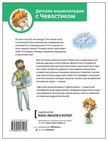 Все это очень хочется узнать Чевостику, и дядя Кузя, как всегда, рад ему в этом помочь! Вместе они отправятся в увлекательное путешествие сквозь пространство и время, чтобы встретить древних стекловаров, алхимиков и известных ученых-химиков прошлых столетий. А затем под присмотром дяди Кузи Чевостик проведет несколько опытов на кухне, которые помогут понять, как же работает эта важная наука - химия.
