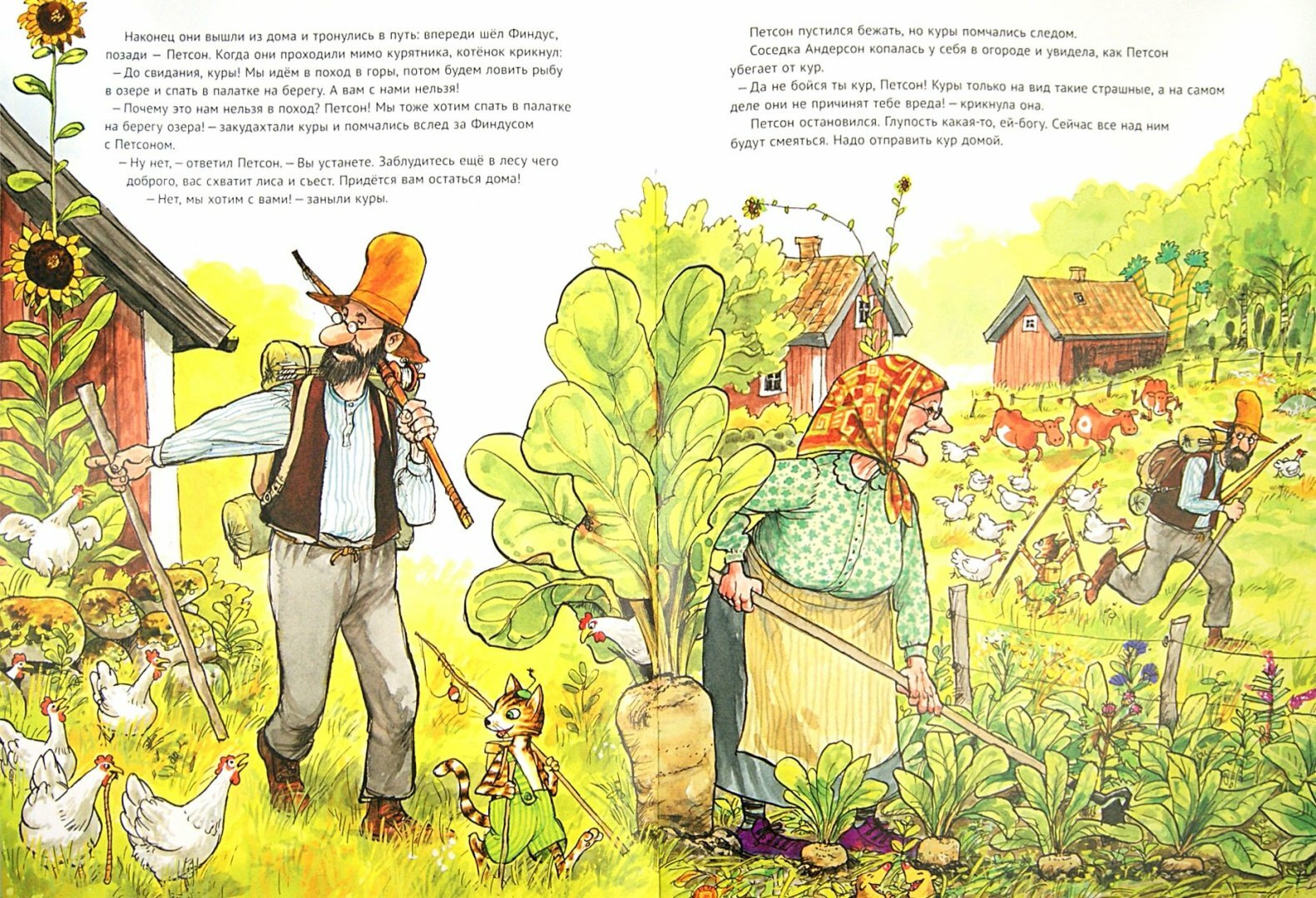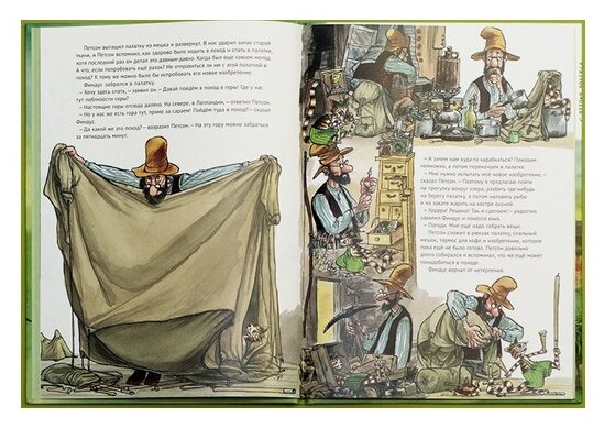 Книги о Петсоне и Финдусе изумительны об этом даже говорить не стоит. В чём плюс именно этой книги, спросите вы? В приключениях! Вы знаете хоть одного ребёнка, который не любит путешествовать? Я нет (хотя я работаю воспитателем и знаю очень много детей)! А поход - это ведь маленькое путешествие и приключение! И не важно, что не всё удаётся, не важно где им пришлось разбить палатку, главное - это походный дух, которым эта книга обладает. Иллюстрации, как и во всех прежних книгах - просто загляденье, со множеством деталей и эмоций!