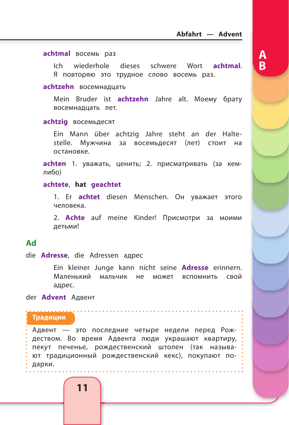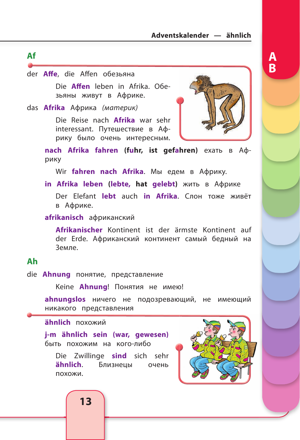 Прекрасное красочное пособие для детей. Прочная обложка. Хороший шрифт. Кроме перечисленных грамматических и лексических приложений есть информация об имени числительном. Есть иллюстрированное приложение о временах года, днях недели, цветах, частях тела человека, одежде, овощах и фруктах, а также о животных. Замечательная книга! Можно самим учиться немецкому языку! Лучше любого обычного словаря!