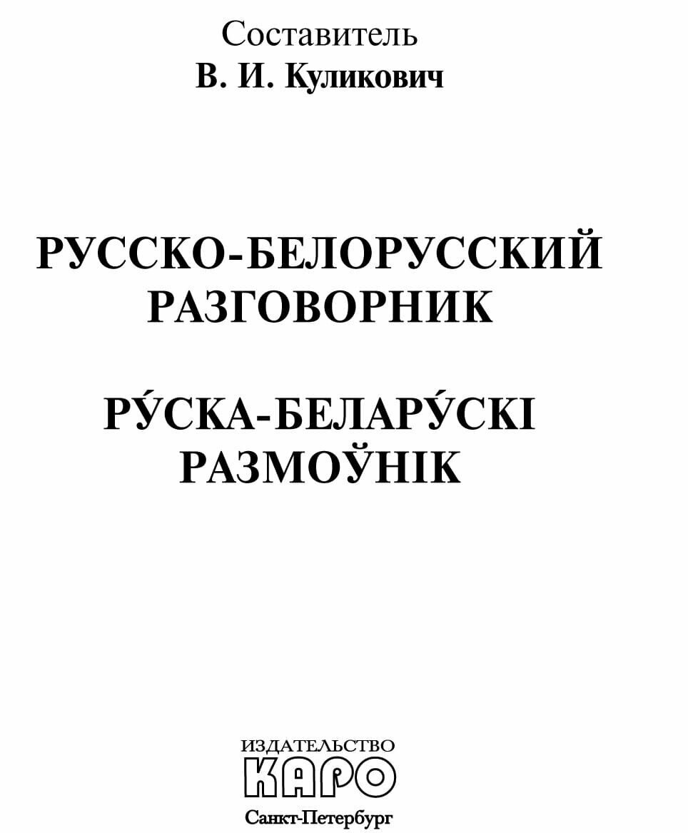 Русско-белорусский разговорник (Куликович Владимир Иванович (составитель)); КАРО, 2014