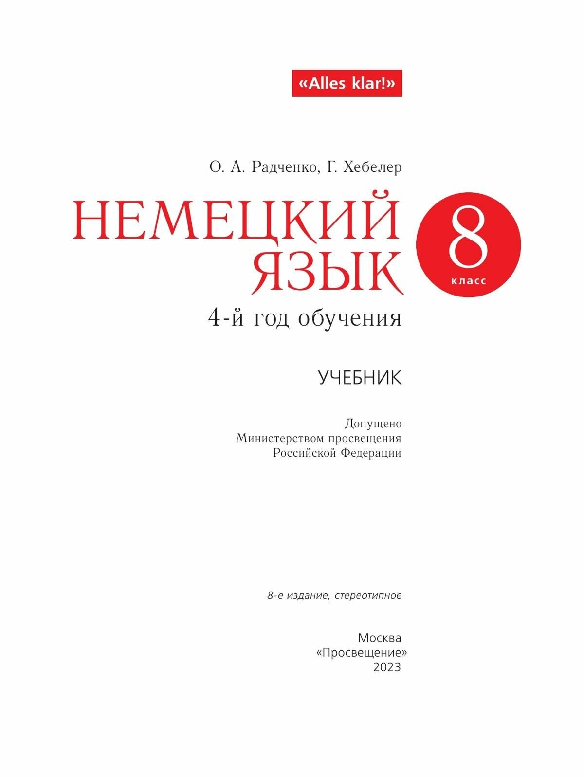 Учебник по немецкому языку предназначен для учащихся 8 классов и является основным компонентом учебно-методического комплекса, в который также входят рабочая тетрадь, электронное приложение, книга для чтения, книга для учителя и методическое пособие к данной линии.