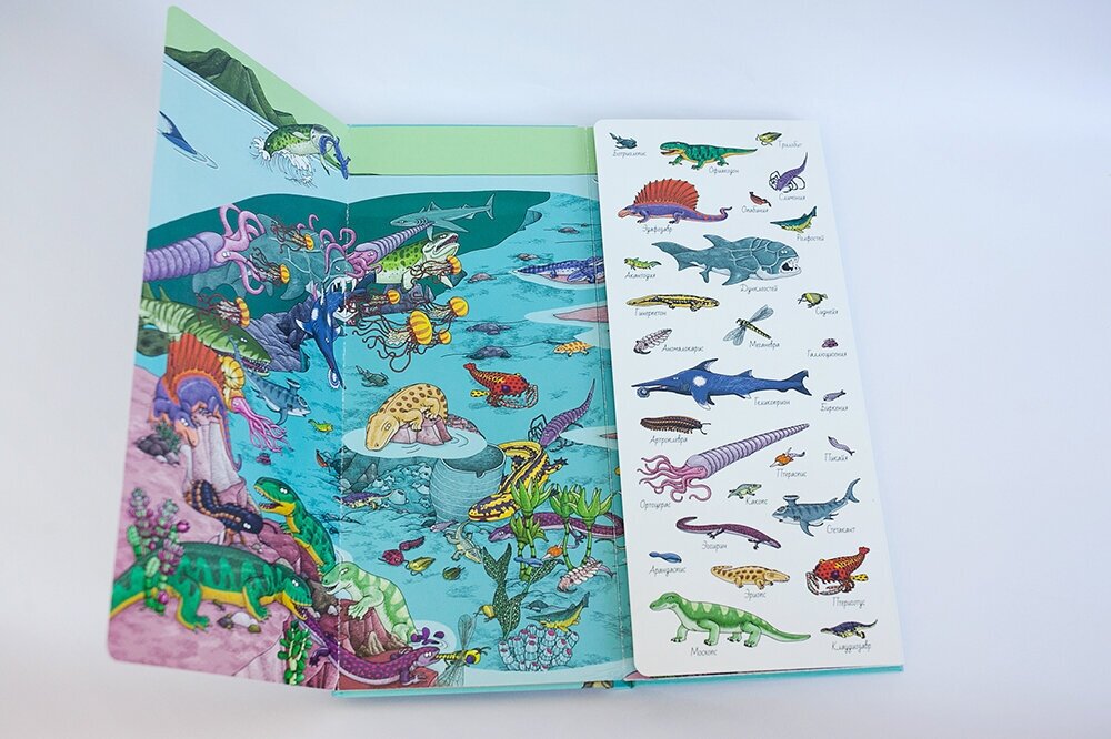 Совершите невероятное путешествие во времени продолжительностью пять миллиардов лет и узнайте, какие виды динозавров существовали в разные эпохи вместе с новой книгой «Найди и покажи. Динозавры». На каждом из 5 разворотов – живописная панорама, посвященная той или иной эпохе. Сначала внимательно изучите животных на клапанах, а потом найдите их на панорамах. Тренируйте внимательность, воображение, развивайте память, играйте в командные игры и находите все 196 предметов. Поразите друзей и родителей своими глубокими познаниями!