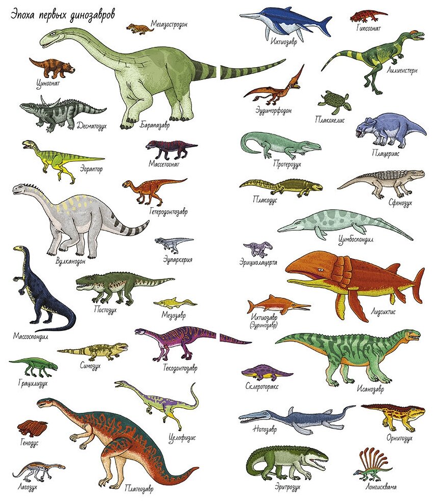 Книга красочная и интересная. В ней рассматривается 5 периодов развития жизни на земле. Открываешь панораму, посвященную каждому периоду. И там штук 20-30 хорошо нарисованных животных (представителей фауны того периода). Перед этим в этой книжке можно прочитать названия этих динозавров. Заодно ребенок учится читать