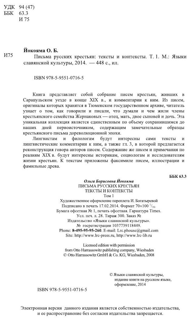 Письма русских крестьян. Тексты и контексты. В 2-х томах (О. Б. Йокояма); Языки Славянской Культуры, 2014