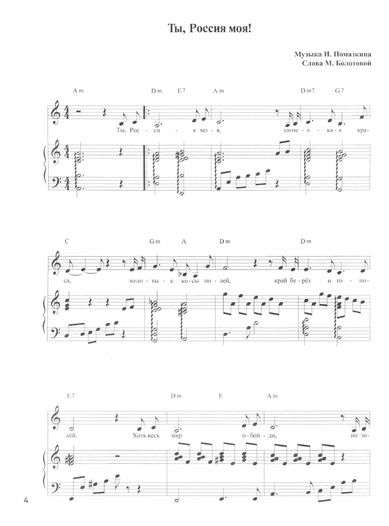 Нотный сборник "Ты, Россия моя!" включает в себя 25 песен в сопровождении фортепиано, разнообразных по жанру и содержанию. Рассчитан на исполнителей разного уровня и возраста.