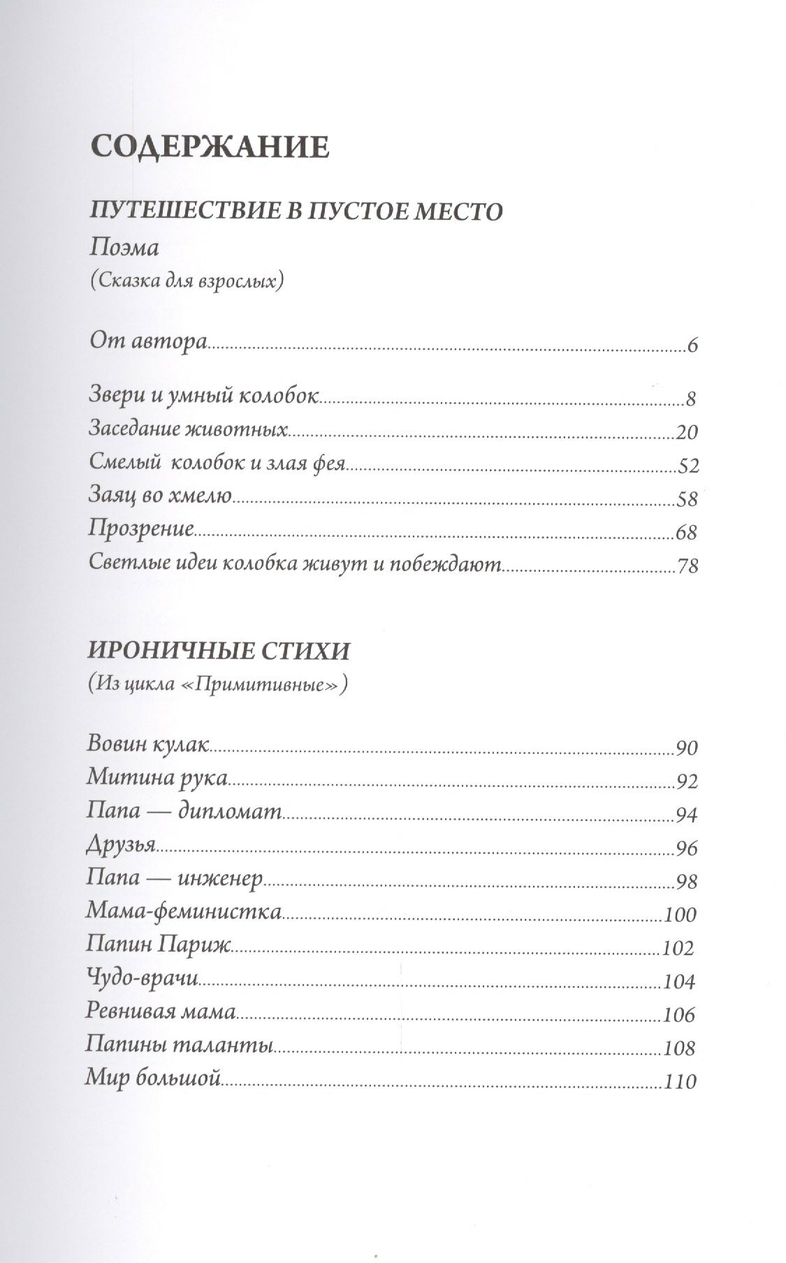 В основе книги "Путешествие в Пустое место" одноименная поэма (сказка для взрослых) и ироничные стихи (из цикла "Примитивные").