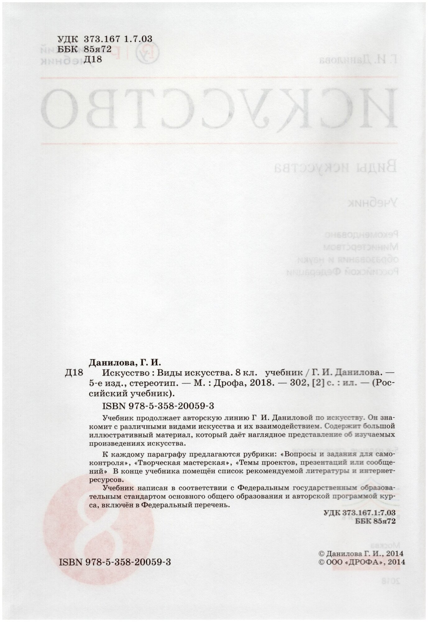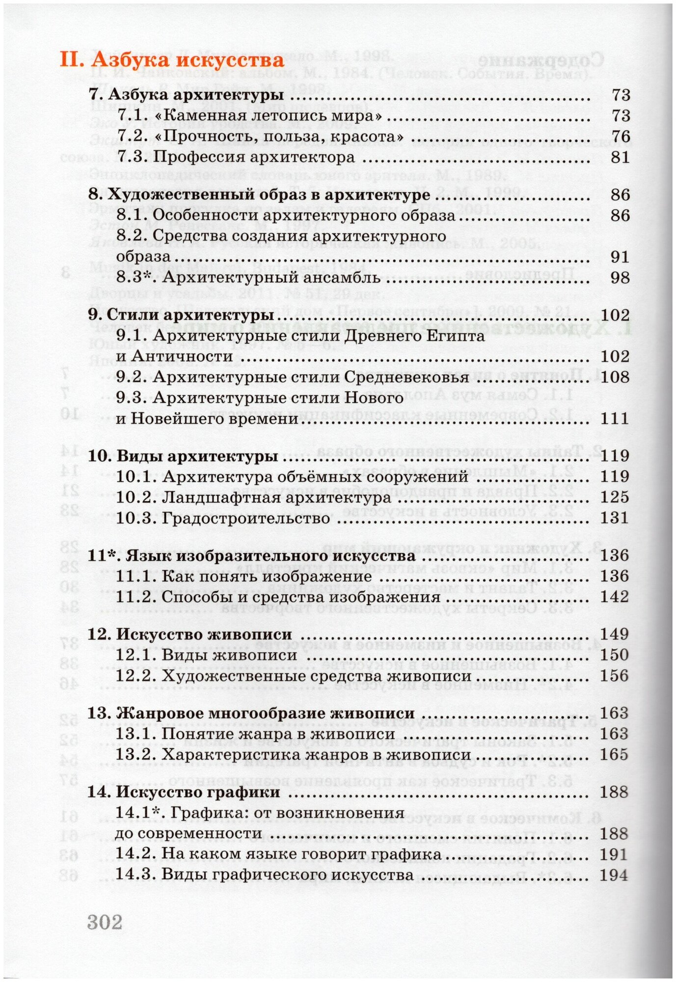 Учебник продолжает авторскую линию Г. И. Даниловой по искусству. Он знакомит с различными видами искусства и их взаимодействием. Содержит большой иллюстративный материал, который даёт наглядное представление об изучаемых произведениях искусства.