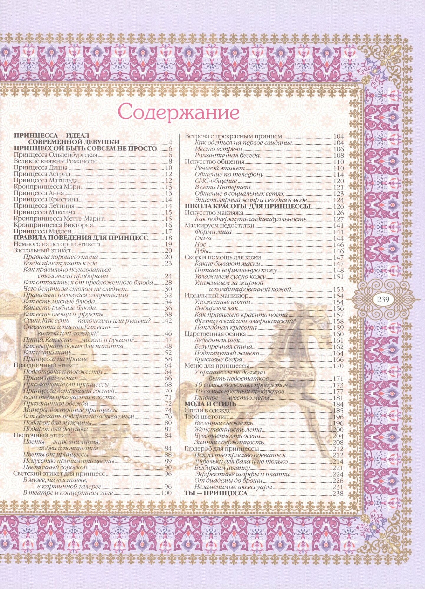 .Благодаря этой книге ты познакомишься с этикетом, научишься искусству общения, держаться на людях, красиво двигаться. Также ты сможешь воспитать в себе положительные душевные качества и стремление к прекрасному. Кроме того, на страницах издания содержится большое количество полезных советов и маленьких хитростей, при помощи которых ты без труда освоишь искусство быть красивой, чтобы спустя короткое время стать настоящей принцессой!