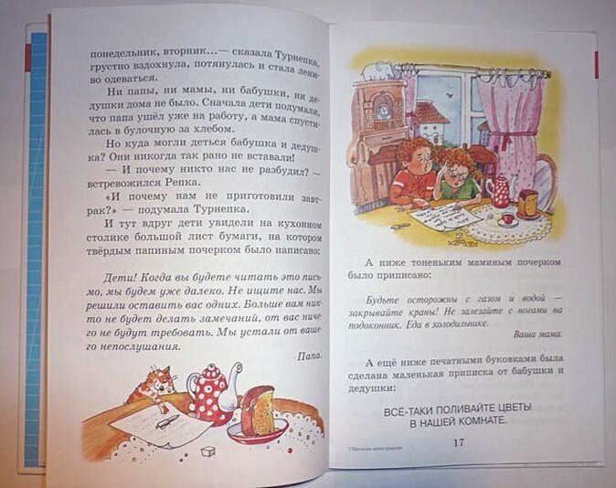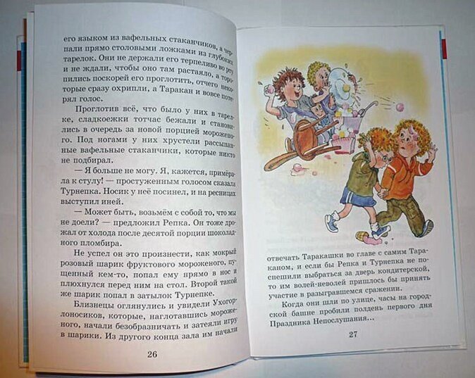 А у меня не было в детстве такой книжки, но был совершенно очаровательный мультик. "До дыр" засматривали. Книга не зря издана в серии "Библиотека начальной школы". Если книга не прочитана дитю раньше, пусть читает ее сам. Шрифт очень удачный, Ё - с точечками, как раз для юных самостоятельных читателей.