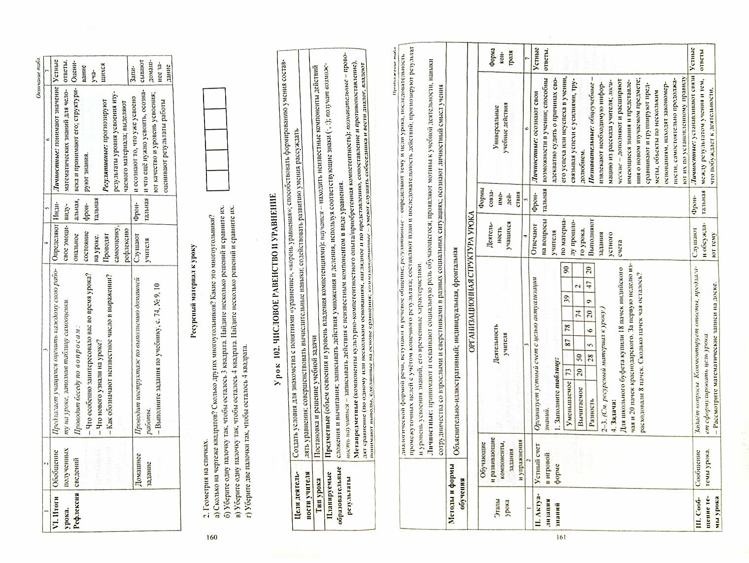 Учебные занятия спроектированы с учетом ФГОС начального общего образования, нацелены на опережающее развитие учащихся и обеспечивают их успешную социализацию; определены предметные, метапредметные (регулятивные, личностные, познавательные УУД) планируемые результаты, педагогические средства, формы организации совзаимодействия учащихся с учителем и сверстниками, продуманы разные задания по уровню сложности и интеллектуально-развивающей направленности (творческие, проблемно-поисковые, исследовательские).