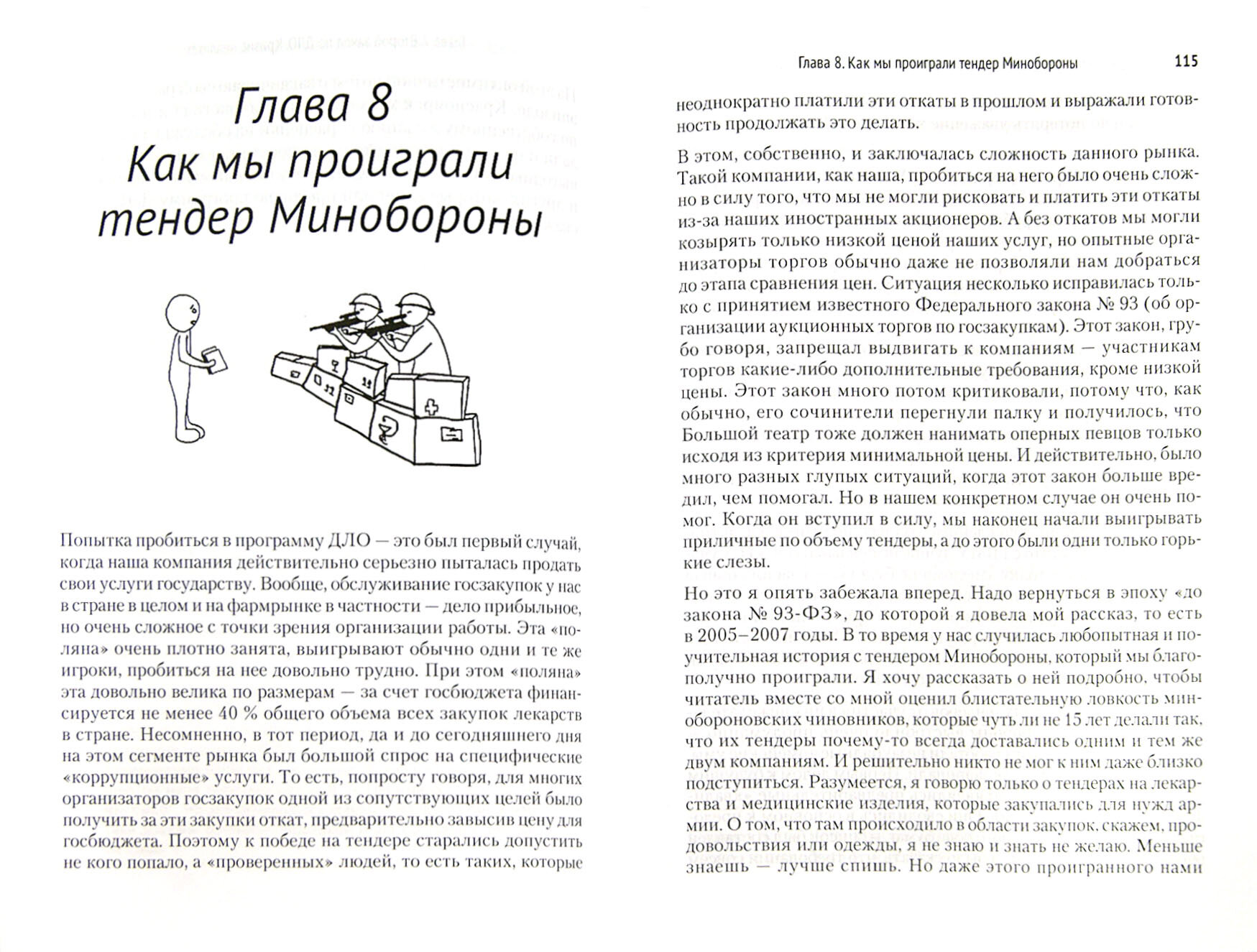 Хотя эта книга, наверное, изначально адресована людям из бизнеса, она может пригодиться и тем, кто покупает лекарства в аптеках (то есть всем нам). Путь препарата от фармкомпании в аптеку может быть очень интересным, и о нём подробно написано в этой книге. К тому же, из неё можно узнать немало полезного о ценообразовании (всё не так просто, как может показаться на первый взгляд).