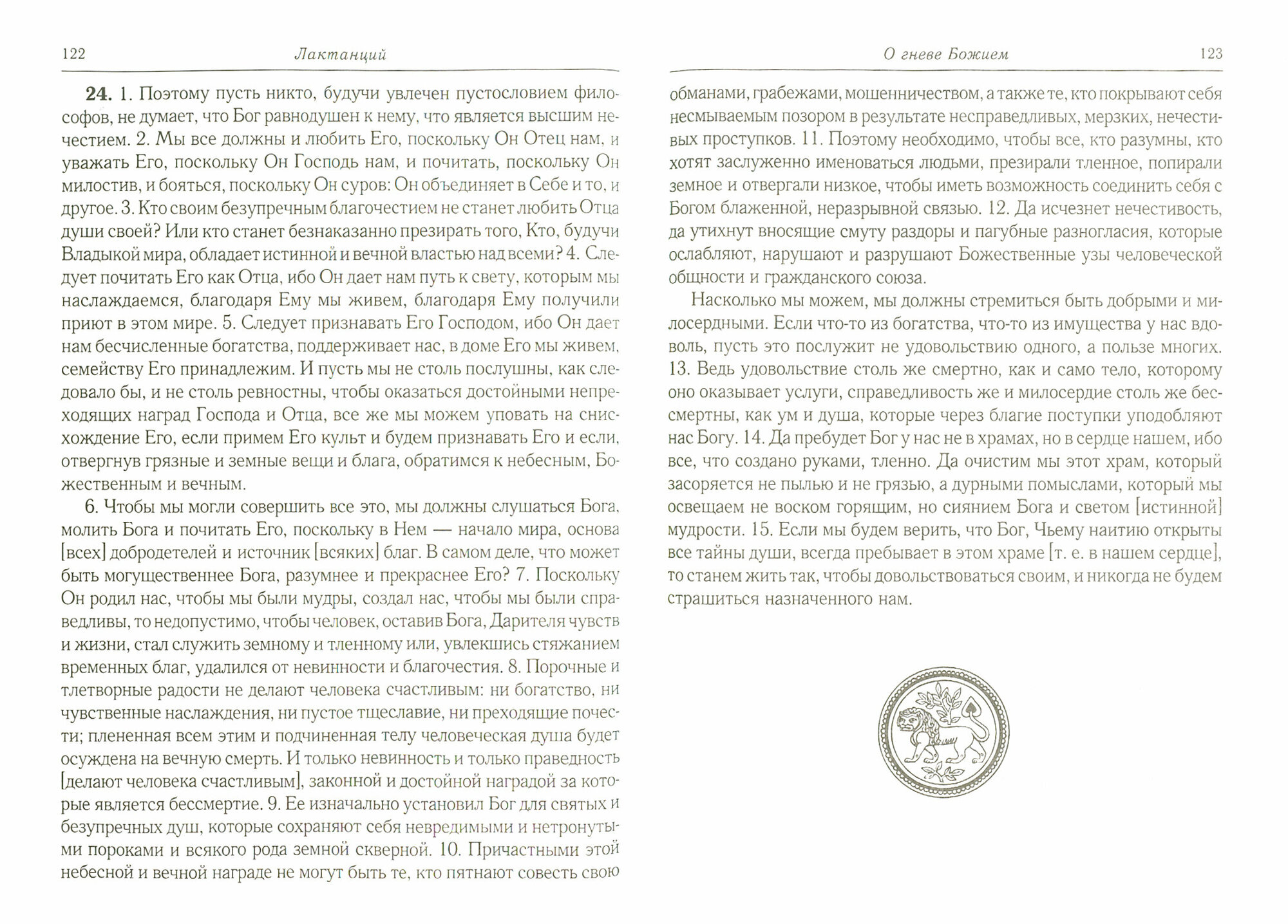В настоящее издание включены работы Лактанция, богослова который жил в эпоху когда Христианство еще не стало официальной религией Римской империи. Большая часть текстов посвящена диспуту с язычниками, которые в то время имели большой вес и никакие административные ограничения не препятствовали открытому спору. Это добавляет ценности исторической и богословской ценности тексту.