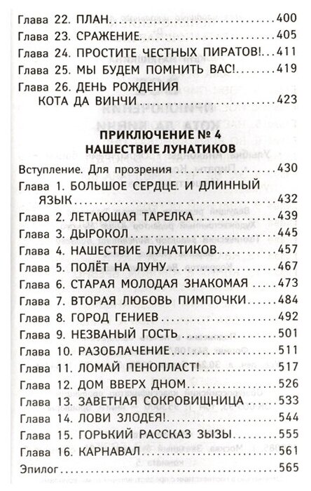 В книгу включены все части приключений. Иллюстрации черно-белые, но это совсем не портит книгу, иллюстрации можно долго рассматривать отдельно от текста (картинки с надписями, задания, уроки рисования, лабиринты и т.д.) Особенно нам понравилась часть "Пираты Кошмарского моря". Спасибо автору за ее юмор и острый язык (Светофор Клумба, Робин Зонт, Пипидон, Мама Боча) )))