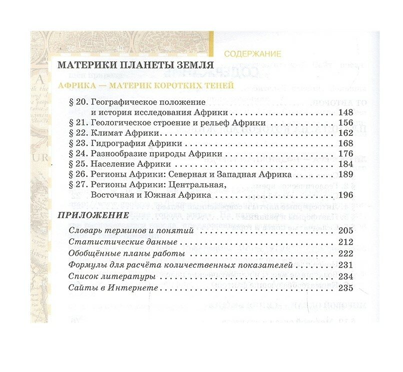 В учебнике (в 2 частях) представлен курс географии материков и океанов. В первой части дается характеристика природных оболочек Земли: литосферы, атмосферы, гидросферы, рассматриваются процессы, происходящие в Мировом океане, а также рассказывается об Африке. Во второй части речь пойдет о специфике Северной и Южной Америки, Австралии, Антарктиды и Евразии. Каждая тема заканчивается блоком проверочных вопросов и практических заданий, призванных закрепить пройденный материал. Издание богато иллюстрировано, в нем много карт, схем, фотографий. Учебник соответствует Федеральному государственному образовательному стандарту.