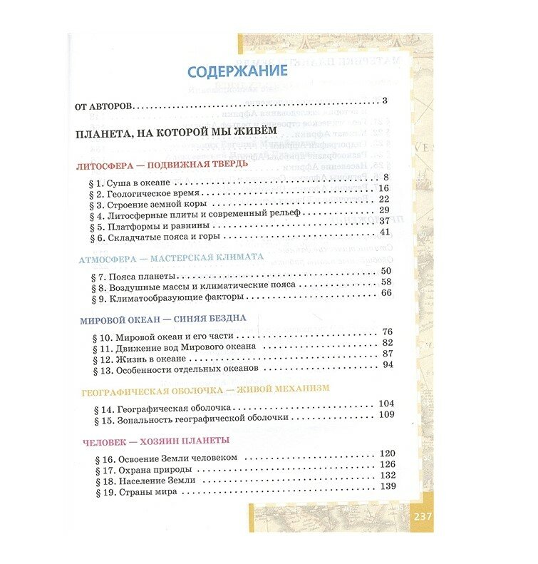 Учебник посвящен гидросфере, литосфере, атмосфере и геосфере. Он информативен, хорошо иллюстрирован, соответствует ФГОС основного общего образования, включен в Федеральный перечень учебников, рекомендованных Министерством образования и науки РФ, адресован обучающимся 7 классов учебных учреждений общеобразовательного уровня.