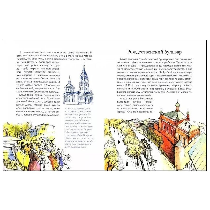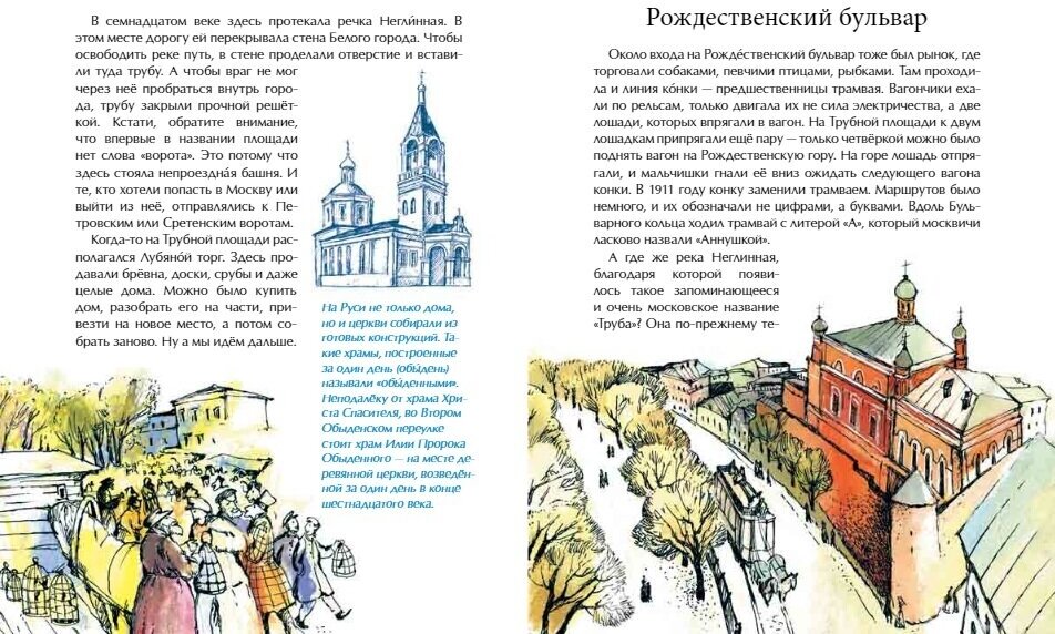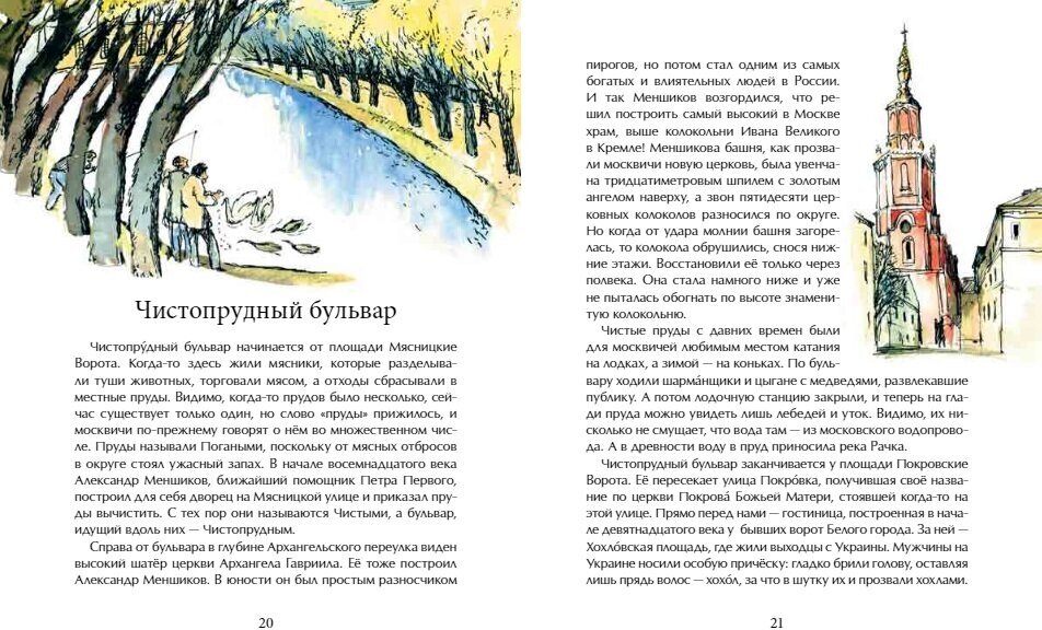 У нас особого восторга книга не вызвала. Может быть, она больше на девочек рассчитана? Вообще создалось впечатление, что книжка больше для юных москвичей, чем для тех, кто живет в других городах. Иллюстрации в классическом стиле. Стиль написания очень взрослый, много исторических заметок, что не каждому ребенку будет интересно. К тому же, автор постоянно нарушает синтаксические нормы. Любой выпускник, сдающий ЕГЭ, знает, что глагол после "кто" употребляется в единственном числе. Книга на любителя.