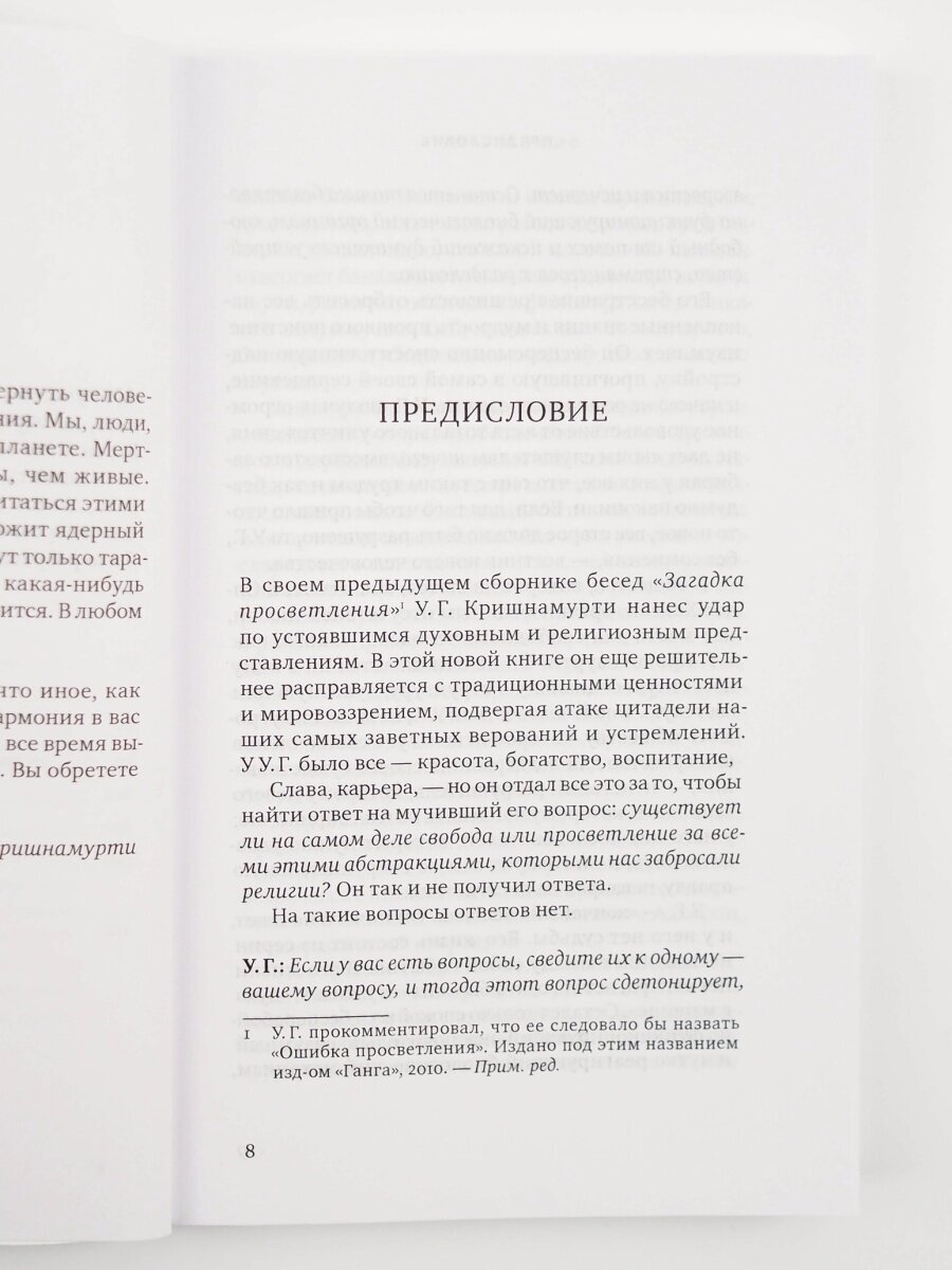 В этой книге Кришнамурти решительно расправляется с традиционными ценностями и мировоззрением, подвергая атаке цитадели наших самых заветных верований и устремлений.
