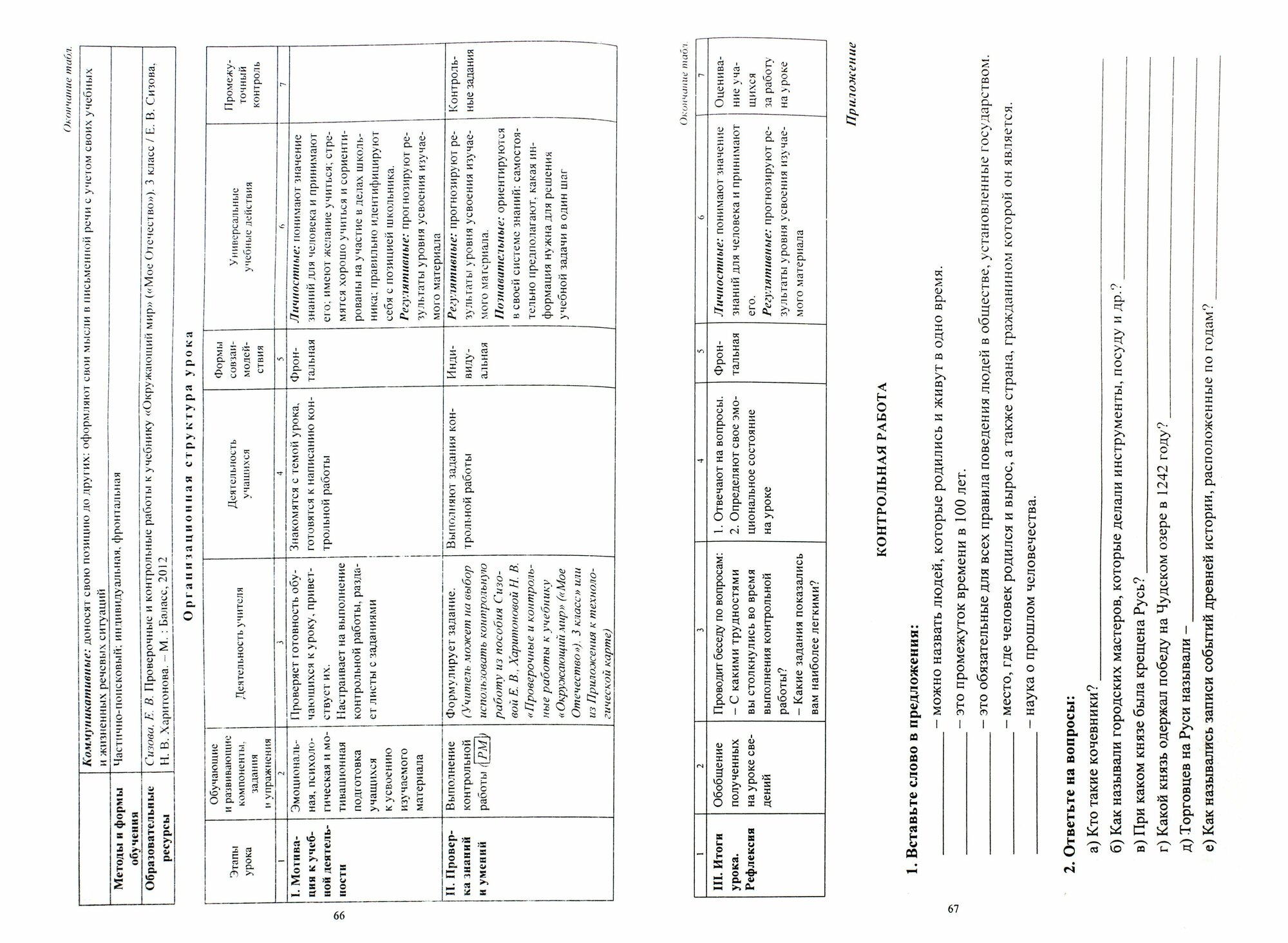 Окружающий мир. 3 кл. Мое Отечество: технологические карты уроков по уч. А. А. Вахрушева и др. (Черноиванова Наталья Николаевна); Учитель, 2013