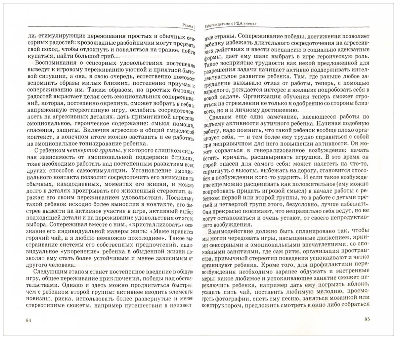 Я отношусь к категории родителей таких детей. Мне книга была очень полезна. В 1 части вкратце описываются 4 группы детей с РДА (совпадает с Никольской), а во 2 части описывается необходимая коррекционная работа с детьми с РДА разных групп, затрагиваются все стороны жизни ребенка: отношения в семье, режим дня, развитие речи и т.д. Я не знаю про автора книги ничего, но у меня сложилось впечатление, что она действительно много работала именно с такими детьми и всё-всё понимает. Есть раздел диагностики, это больше специалистам пригодится. Есть в приложениях стишки, описываются варианты физкультминуток, дыхательная гимнастика, пальчиковая гимнастика, психогимнастика (этюды, мимика, пантомимика), игры и упражнения для снятия страхов и повышения уверенности в себе и др.