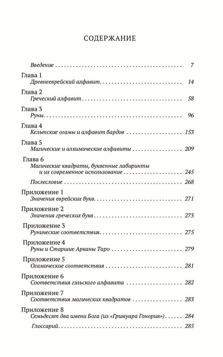 Книга "Магические алфавиты" очень понравилась: именно то, что я искала. Рассматриваются древнееврейский, греческий алфавиты, кельтские огамы, руны, алфавит бардов. Каждая буква отдельно описывается: название, значение названия, числовое соответствие, эзотерическое значение. Сама книга очень хорошо оформлена, белая бумага, четкая печать, рисунки выполнены также вполне четко. Рекомендую всем, кто увлекается подобной тематикой: много интересного.