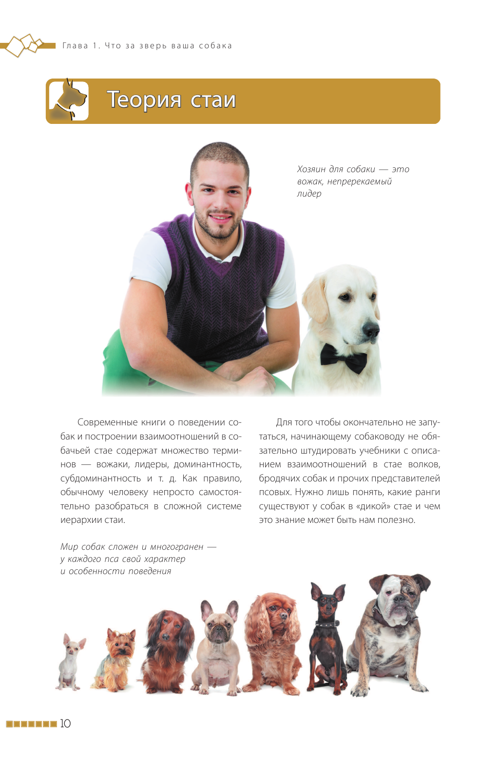 Книга отличная! Очень жалею, что не купила ее раньше. В идеале ее нужно приобретать вместе с покупкой собаки. Описаны все проблемные ситуации, которые могут возникнуть при воспитании собаки, коррекция нежелательного поведения. А так же подробно представлены описания дрессировки базовым командам и множеству разных трюков, которые выделены в отдельный раздел. Еще один раздел посвящен дрессировке служебных собак. Книга отличного качества, глянцевая бумага с фотографиями и наглядными рисунками. Владельцам собак рекомендую.