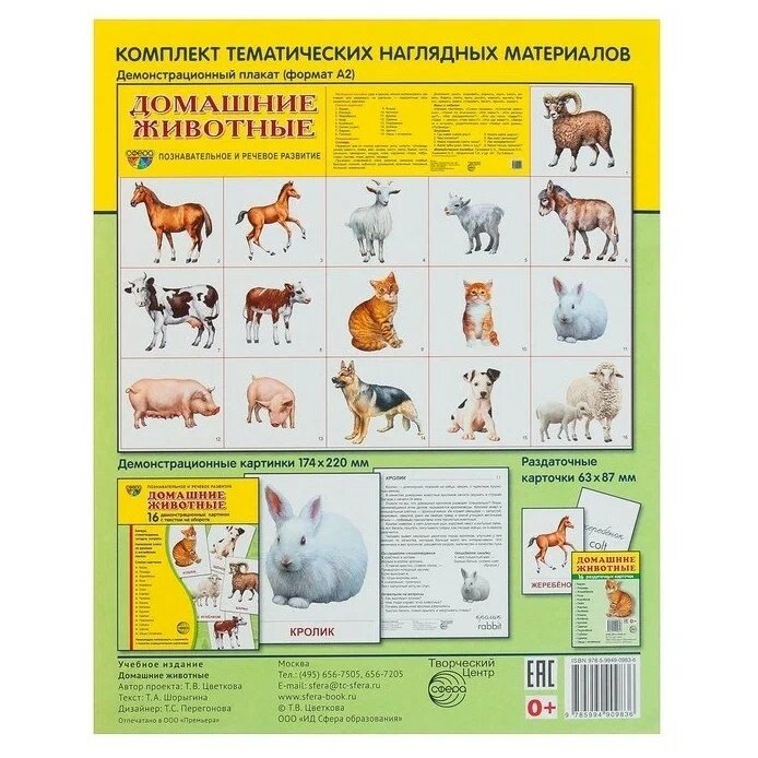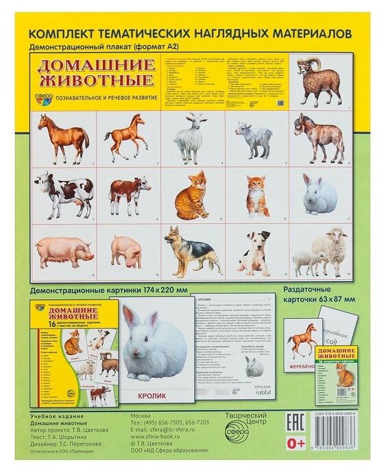 Демонстрационные картинки "Домашние животные" (16 штук) (Цветкова Татьяна Владиславовна); Творческий центр Сфера Издательство, 2018