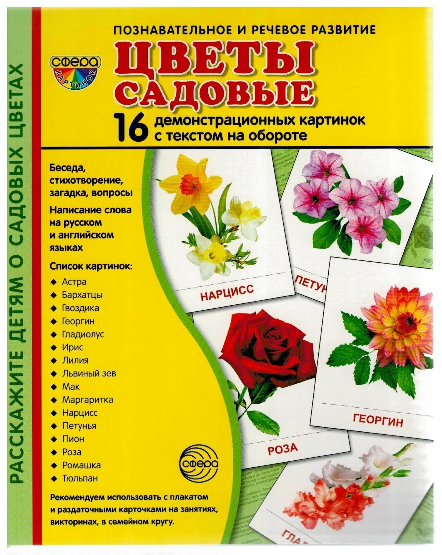 Демонстрационные картинки "Цветы садовые" (16 штук) (Цветкова Татьяна Владиславовна); Сфера, 2016