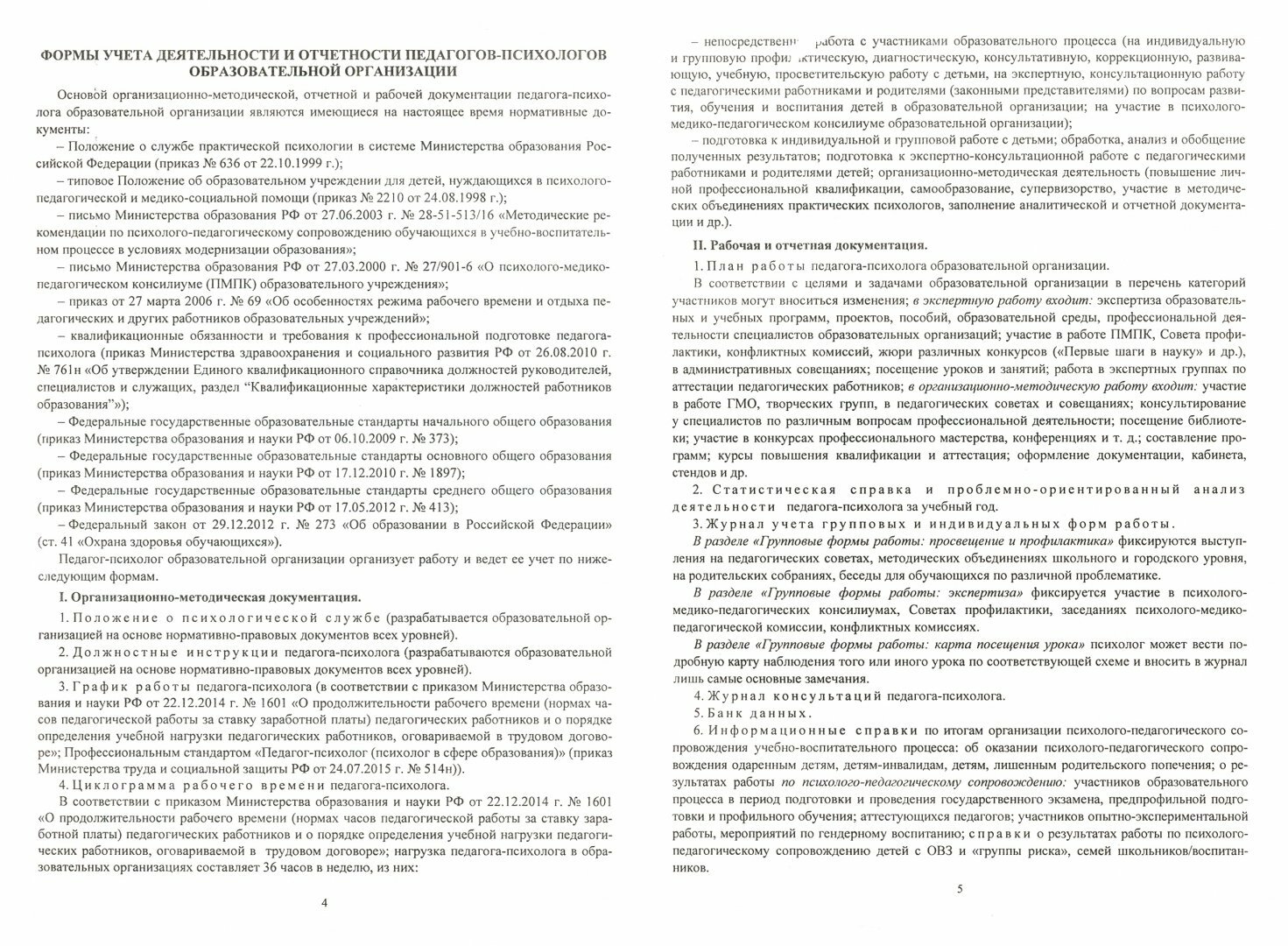 Формат дневника с предложенными образцами для заполнения (график, циклограмма, план работы, статистические и информационные справки, журнал индивидуальных и групповых форм, консультаций) позволит психологу оперативно справиться с оформлением нормативной и организационно-методической документации по учету деятельности и отчетности в условиях введения федеральных государственных образовательных стандартов общего образования.