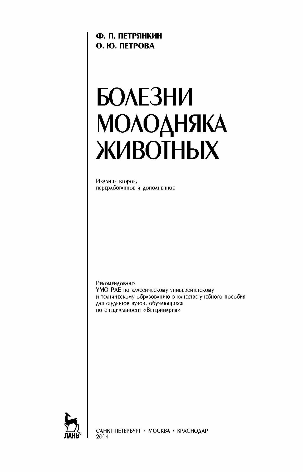 Болезни молодняка животных. Учебное пособие (Ф. П. Петрянкин); Издательство ЛАНЬ, 2014