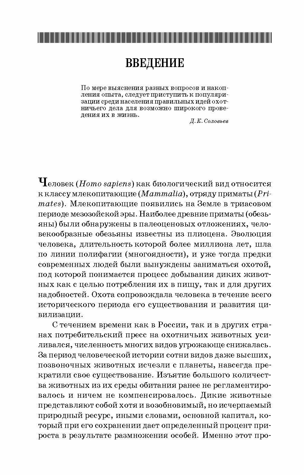 Книга включает теоретические основы охотоведения как научной дисциплины и практические вопросы охоты и охотничьего хозяйства России. Рассмотрены история охоты и охотничьего хозяйства, государственный охотничий фонд и ресурсы охотничьих животных, биологические основы охотничьего хозяйства, влияние на охотничью фауну антропогенных факторов и практическое значение охотничьих животных. Показаны состояние и проблемы организации охотничьего дела, охотоустройства, методология учета численности охотничьих животных, основы биотехнии, охраны фауны. Приведена детальная характеристика технических средств охоты и охотничьей продукции. Для студентов охотоведческих, лесохозяйственных и сельскохозяйственных специальностей, работников охотничьего хозяйства и смежных с ним хозяйственных отраслей, охотников, а также специалистов природоохранной сферы.