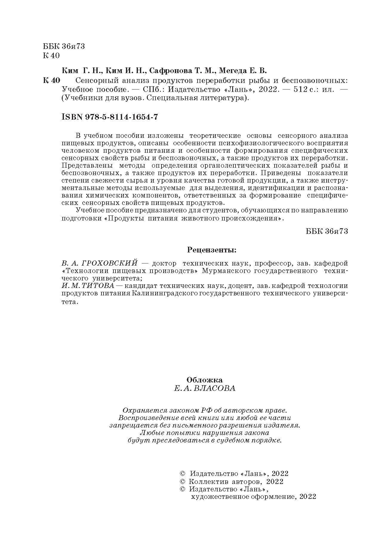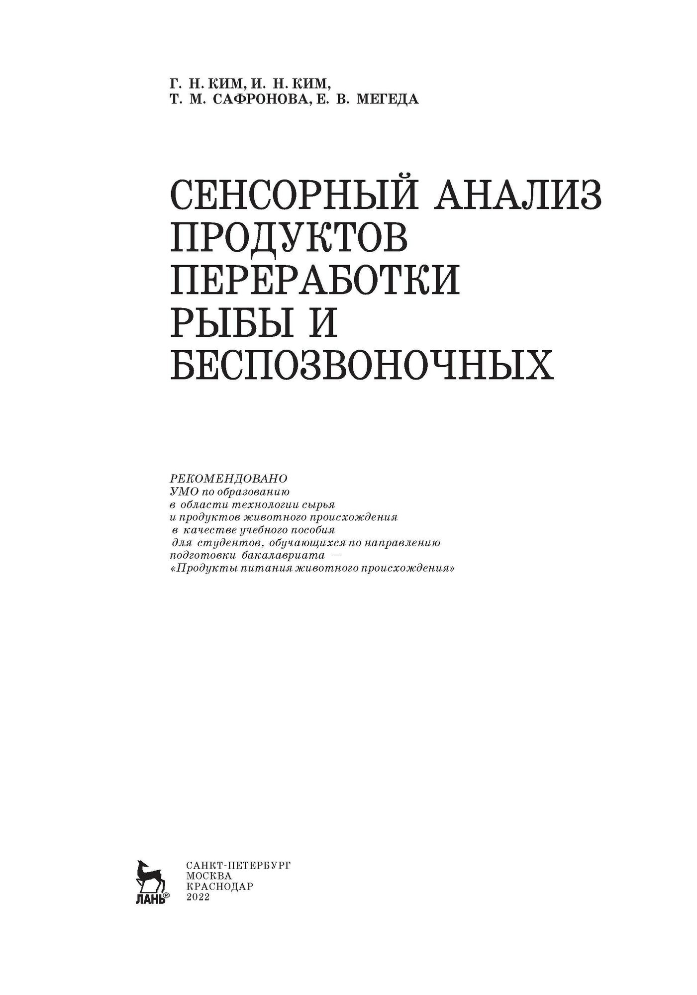 Сенсорный анализ продуктов переработки рыбы и беспозвоночных. Учебное пособие (Ким Георгий Николаевич, Ким Игорь Николаевич, Сафронова Тамара Михайловна, Мегеда Евгений Витальевич); Лань, 2014
