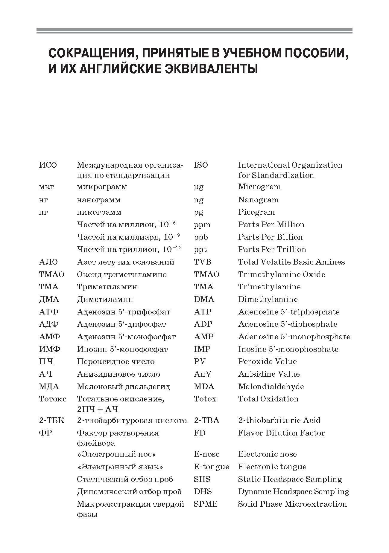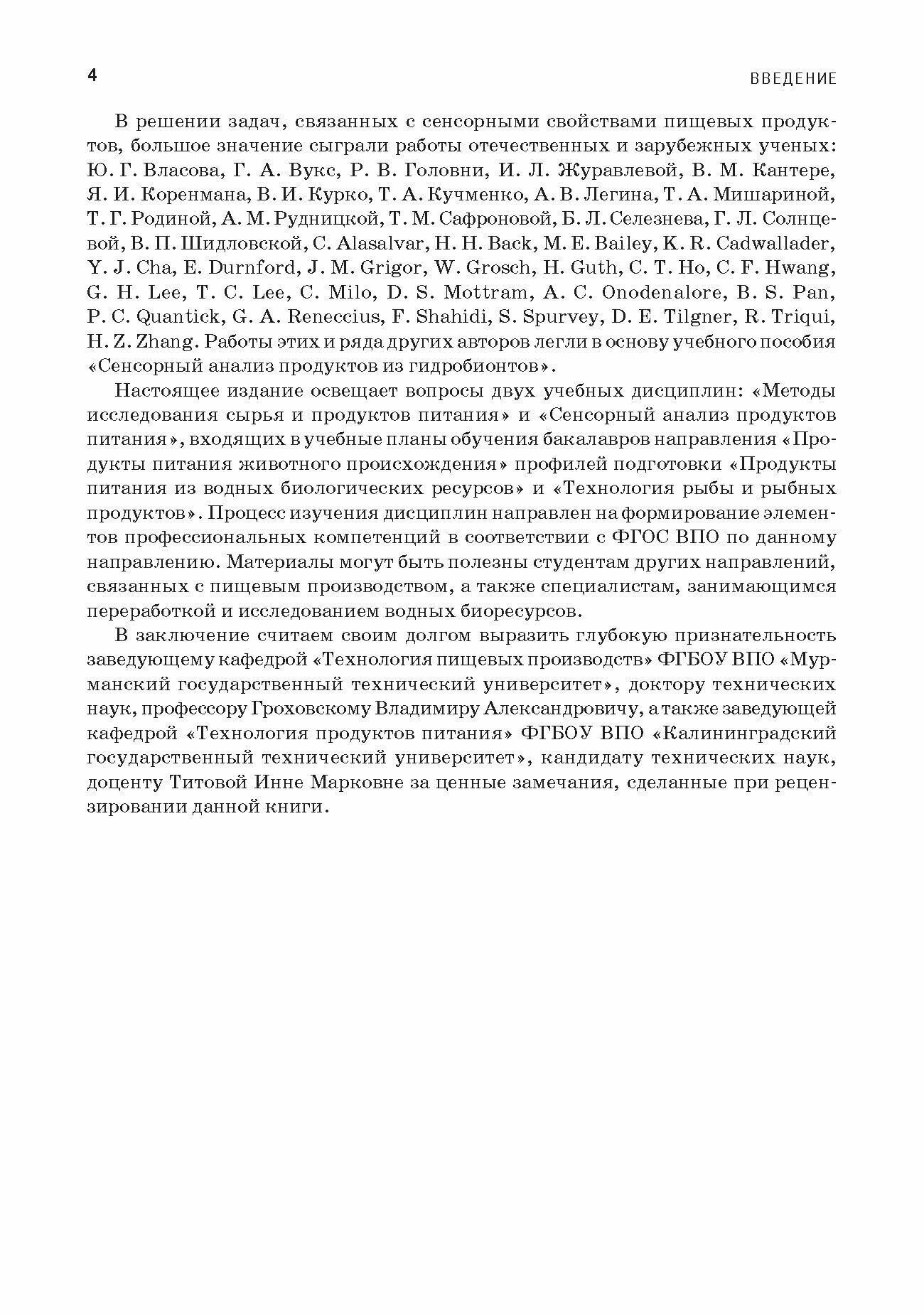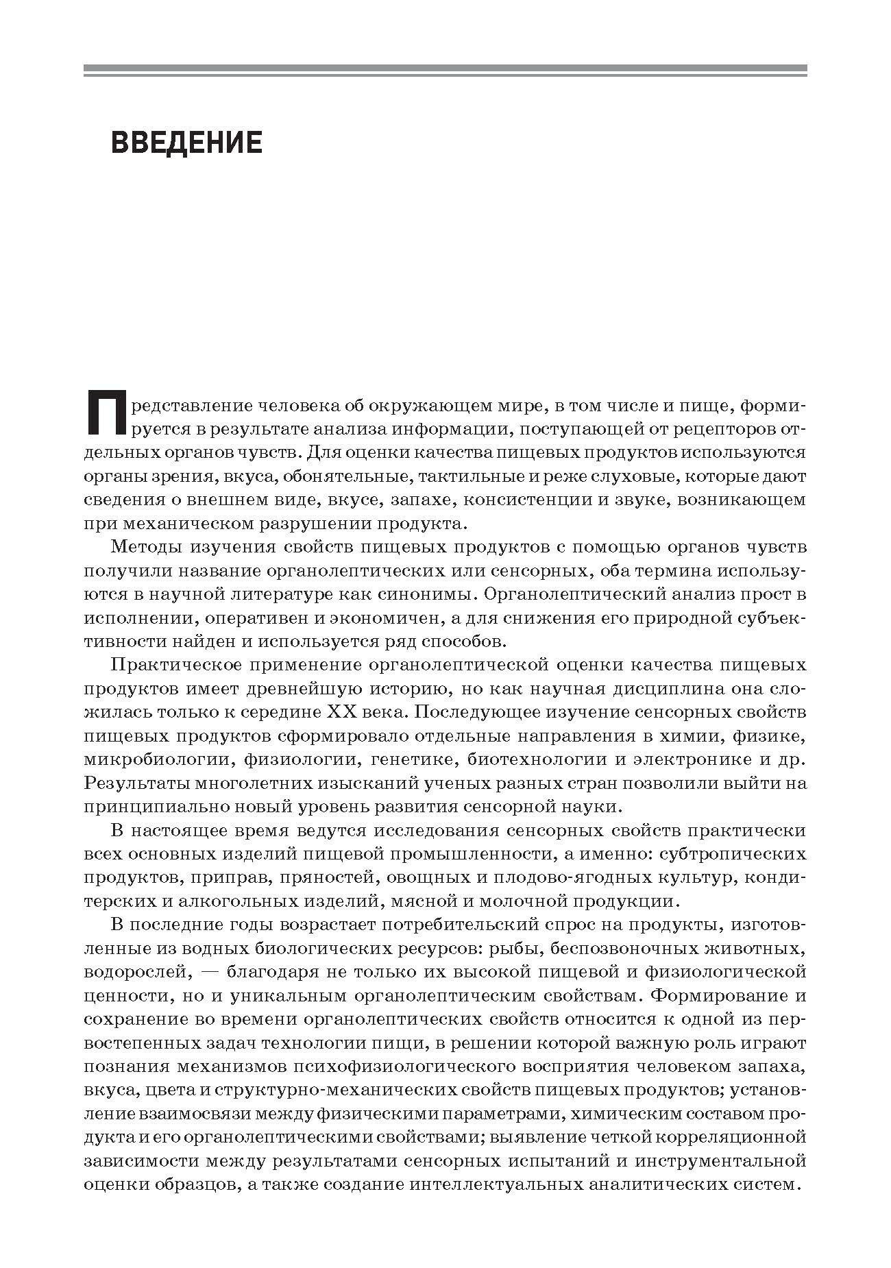 В учебном пособии изложены теоретические основы сенсорного анализа пищевых продуктов, описаны особенности физиологического восприятия человеком продуктов питания. Рассмотрены аспекты взаимосвязи физических параметров и химического состава пищевых продуктов с их органолептическими показателями. Описаны особенности формирования специфических сенсорных свойств рыбы и беспозвоночных, а также продуктов их переработки. Рассмотрены методы сенсорных исследований и области их применения, факторы, влияющие на точность результатов сенсорного анализа. Представлены методики определения органолептических показателей рыбы и беспозвоночных, а также продуктов их переработки. Описаны показатели степени свежести сырья и уровня качества готовой продукции, а также инструментальные методы используемые для выделения, идентификации и распознавания химических компонентов, ответственных за формирование специфических сенсорных свойств пищевых продуктов.