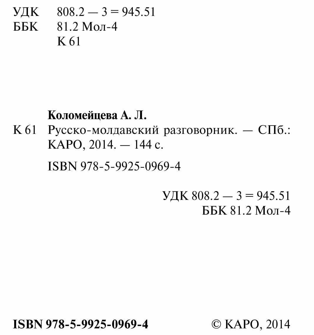 Русско-молдавский разговорник (Коломейцева Анна Леонидовна); КАРО, 2014