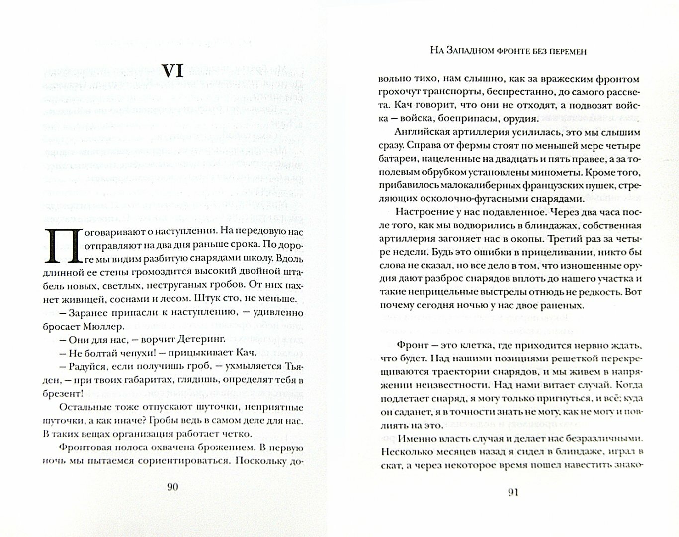 Ужасы войны и психологический настрой четко переданы Ремарком. Читатель буквально чувствует боль мальчишек, сражающихся за выдуманные идеалы. Диалоги выдержаны, описания точны, в книге нет ни одного лишнего слова.